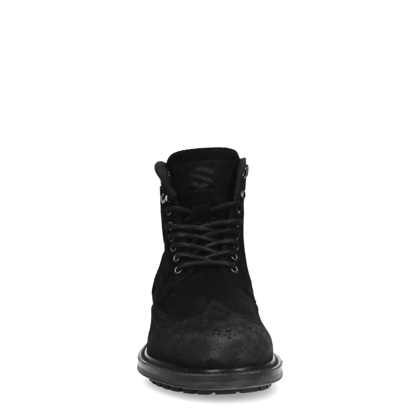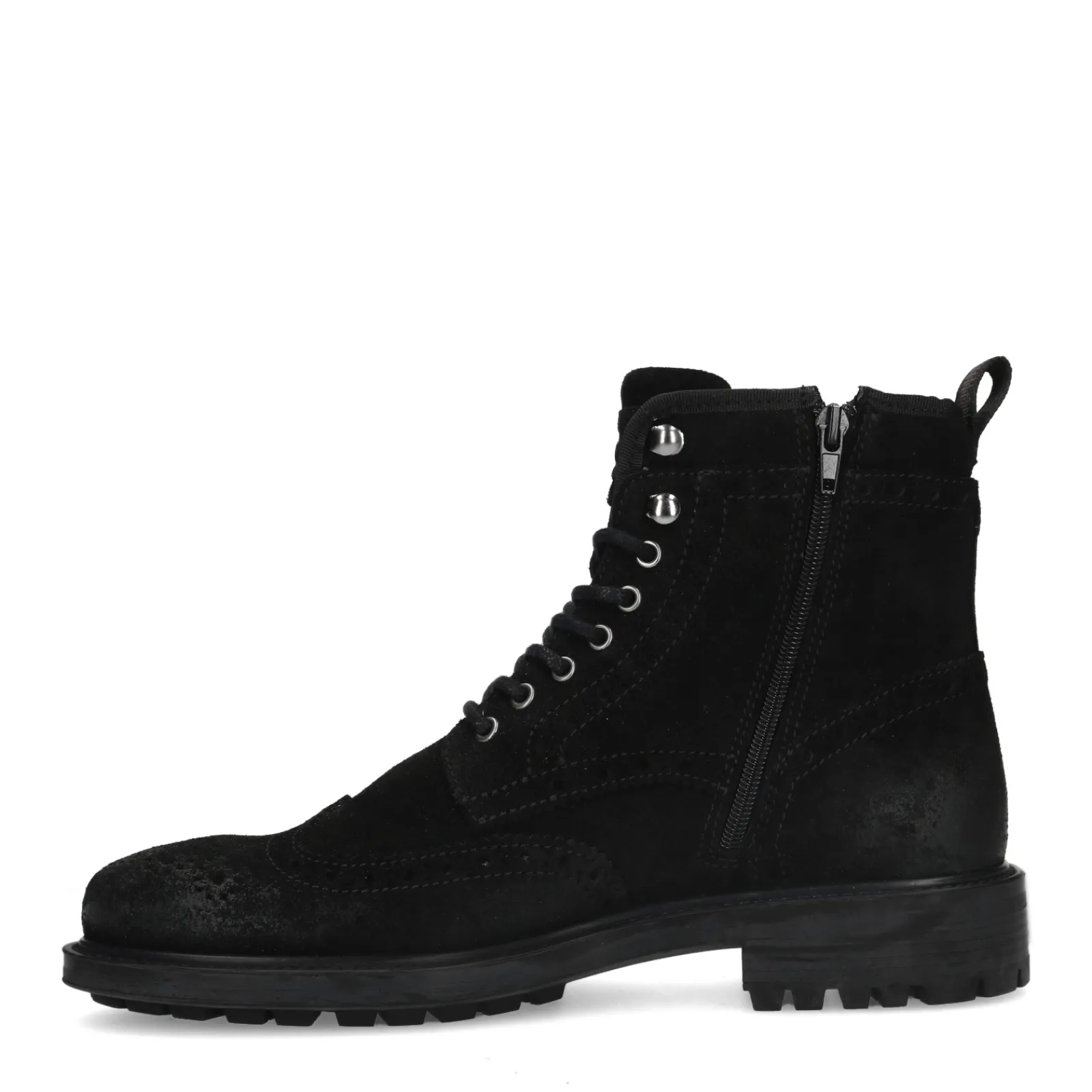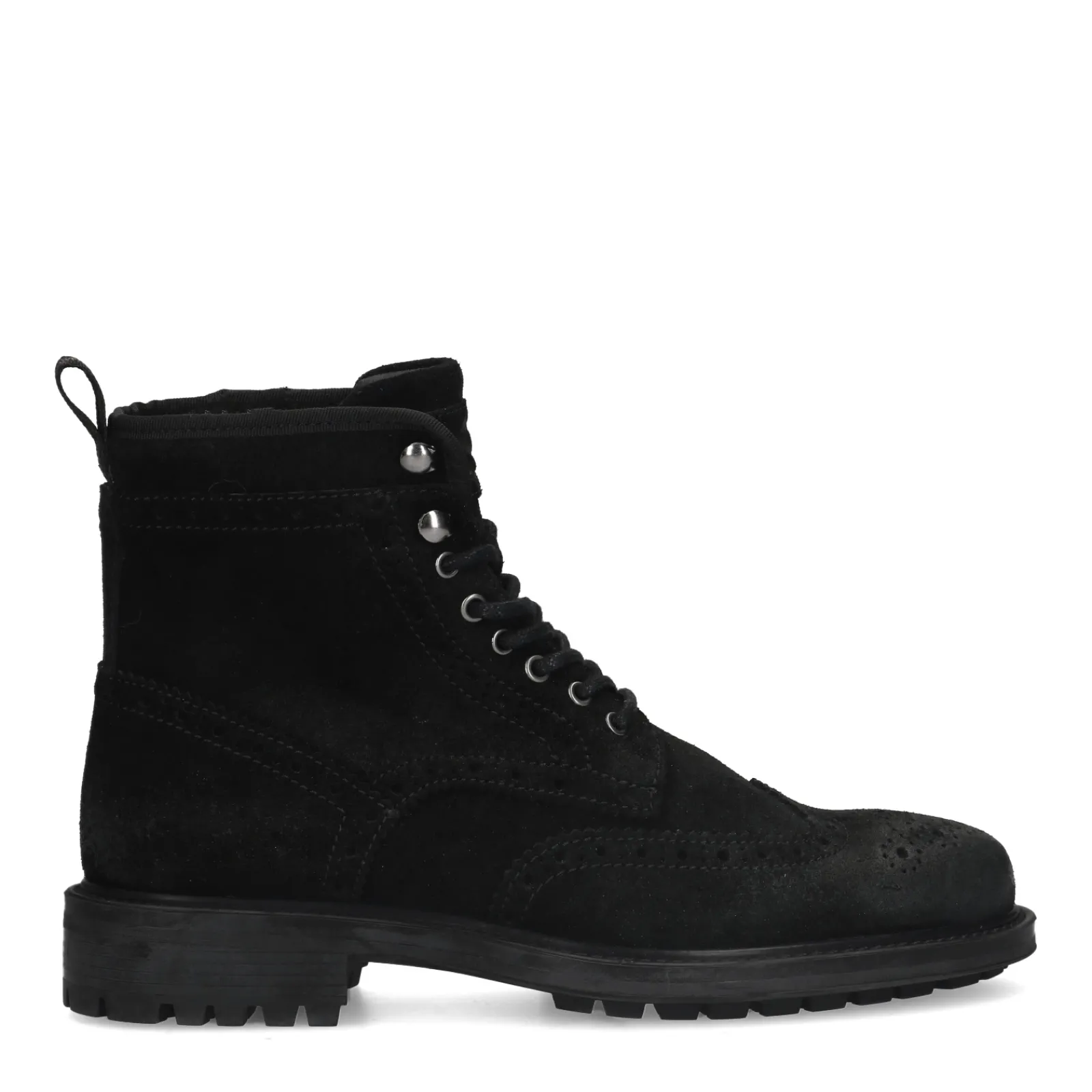 Deze Zwarte Suede Veterboots Van Sacha Hebben Een Uniek Design. De Heren Boots Hebben Een Opvallend Maar Subtiel Design Op De Buitenzijde En Neus Van De Schoen. De Veterboots Zijn Aan De Buitenzijde Gemaakt Van Suede En Aan De Binnenzijde Gemaakt Van Leer. De Laarzen Sluiten Middels Een Handige Rits Aan De Binnenzijde En Hebben Een Schachthoogte Van 15 Cm En Een Schachtomtrek Van 31 Cm. Onderhoud De Veterboots Met De Juiste Onderhoudsproducten!