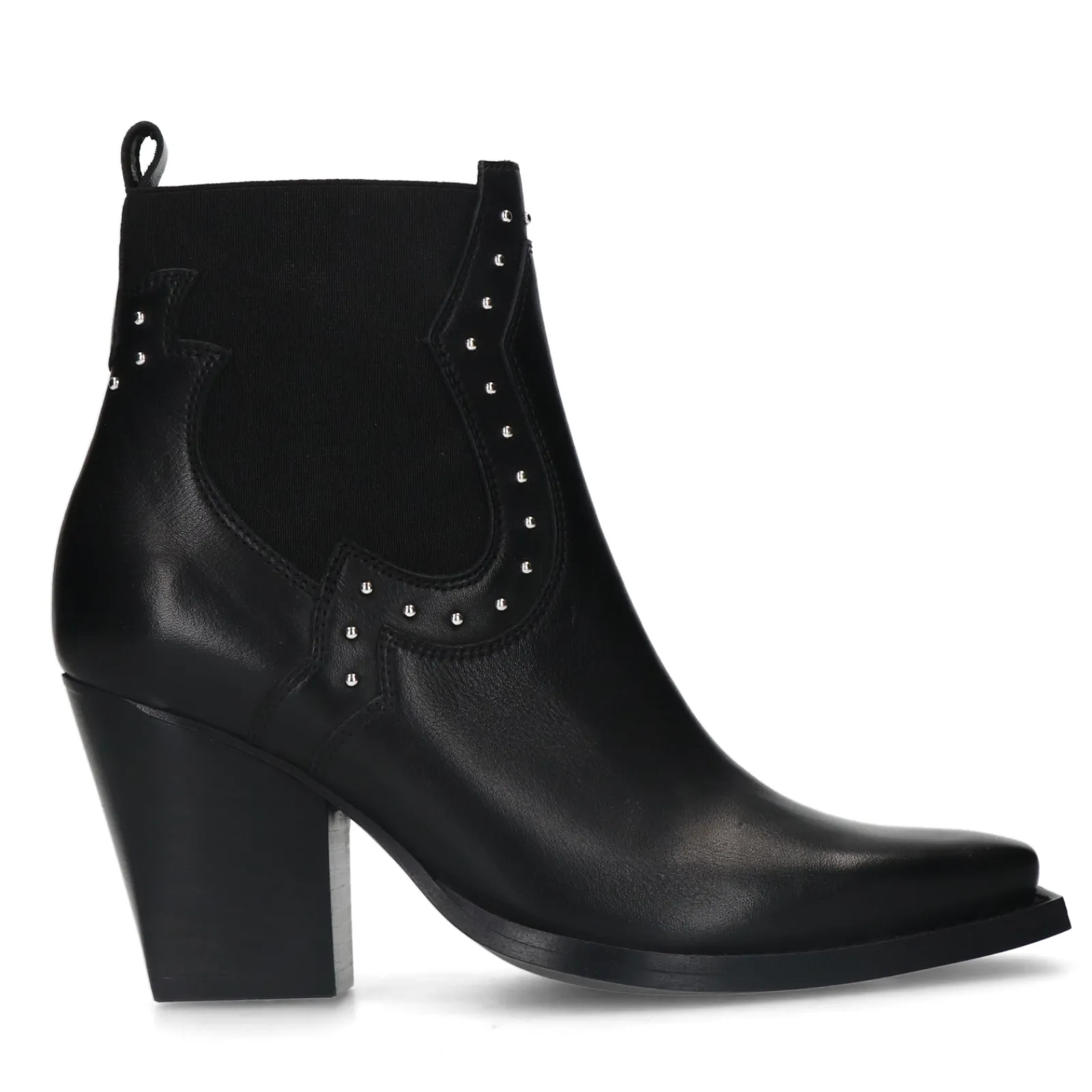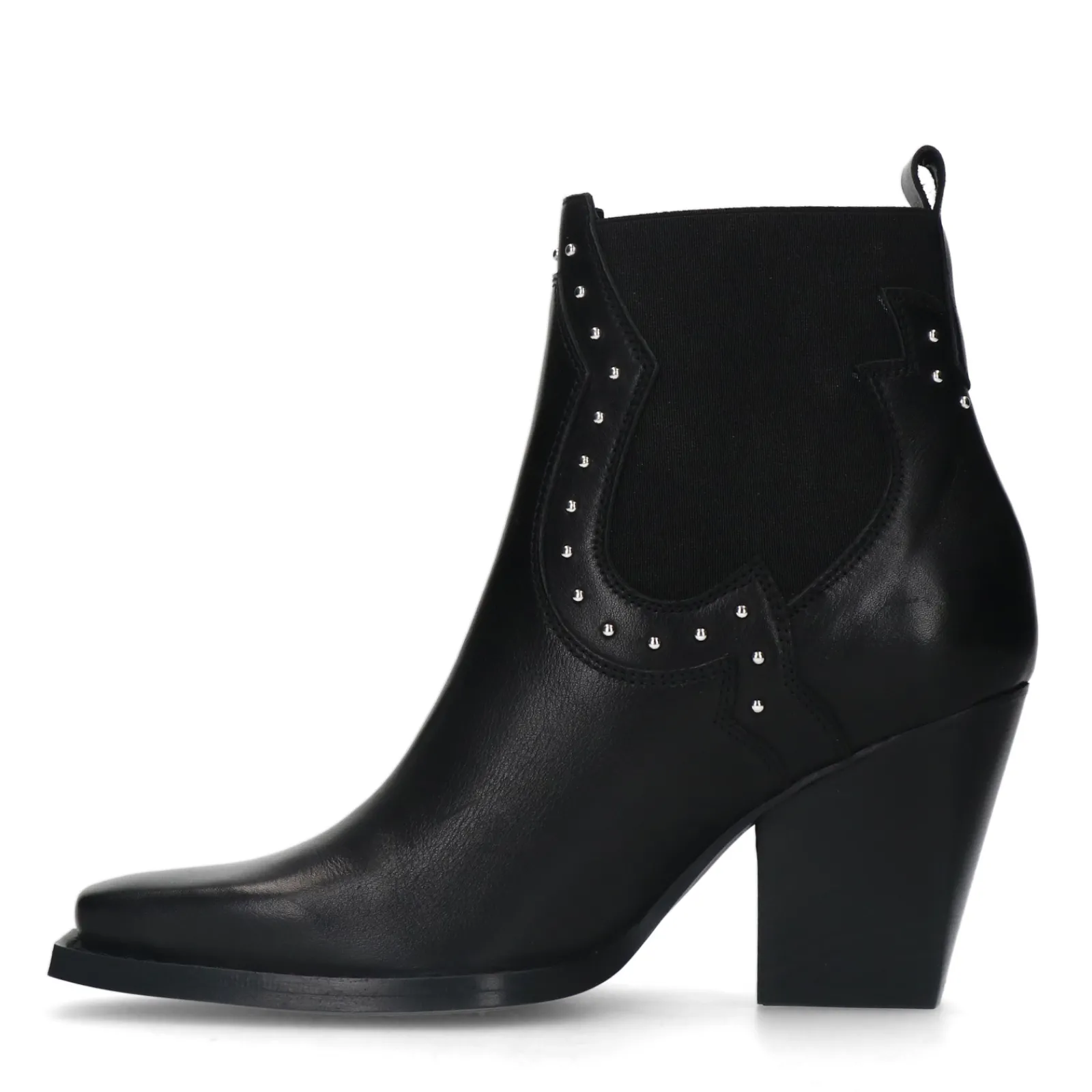 Zwarte Western Enkellaarsjes Met Hak^Sacha Best