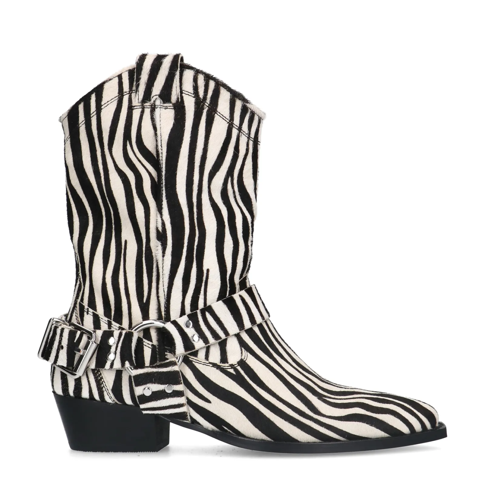 Deze Unieke Enkellaarsjes Van Sacha Hebben Een Stoer Western Karakter En Een Harig Zebraprint Afwerking Aan De Buitenzijde. De Cowboylaarsjes Hebben Een Lage Hak Van 4 Cm, Een Zilverkleurige Buckle Gesp En Een Puntige Neus. De Western Boots Hebben Een Schachthoogte Van 20 Cm, Een Schachtomtrek Van 33 Cm En Een Rits Aan De Binnenzijde. Verzorg De Enkelalaarsjes Met De Juiste Onderhoudsproducten!