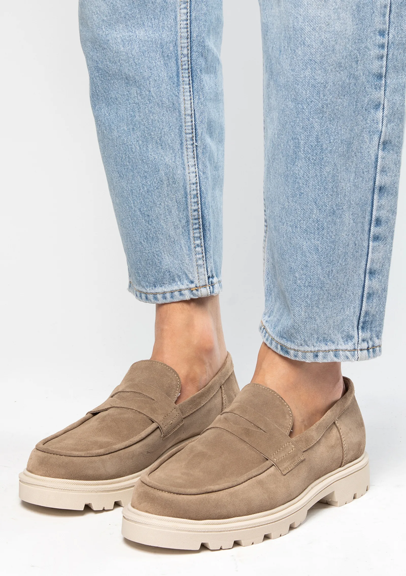 Beige Chunky Suede Loafers^Sacha Cheap