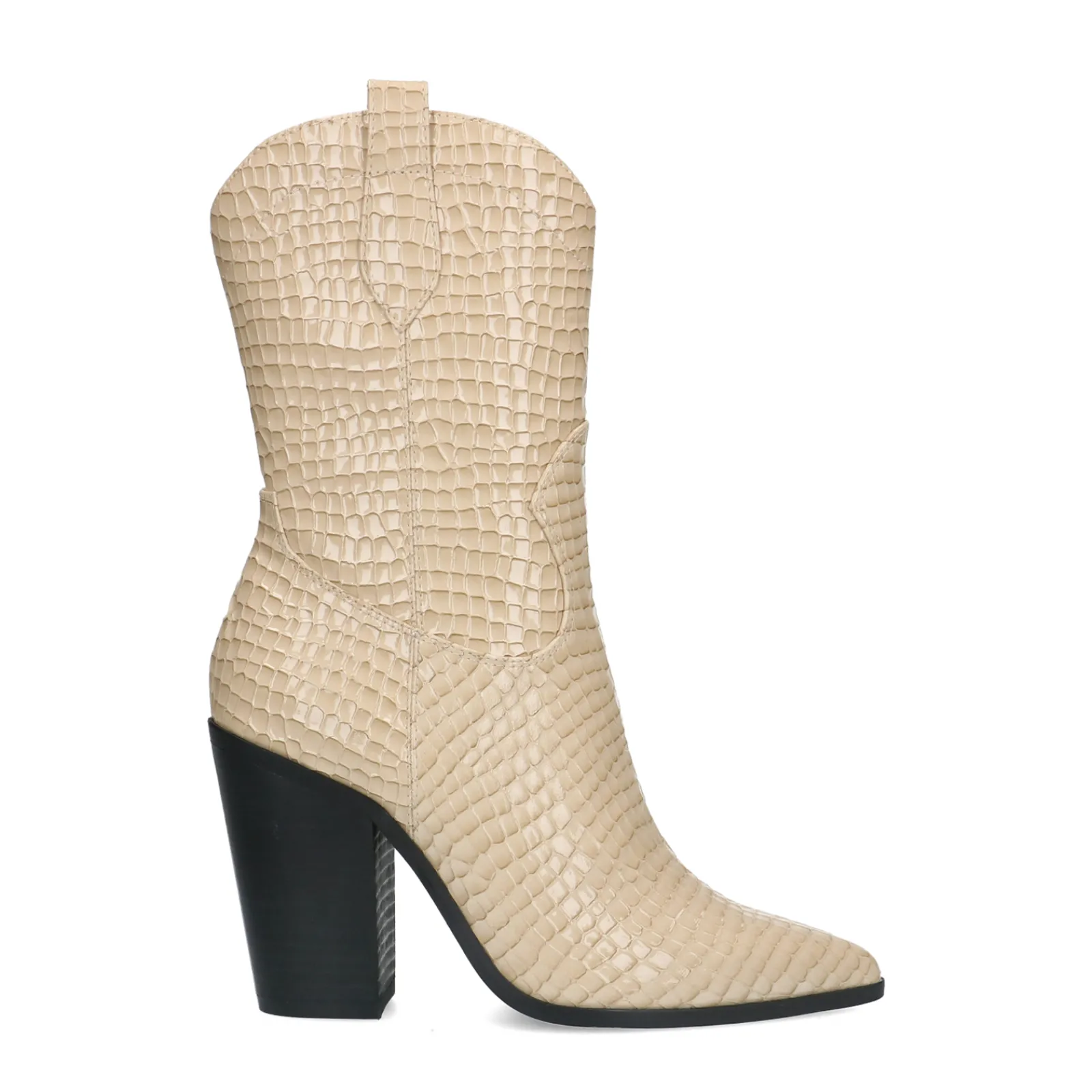 Deze Enkellaarsjes Met Hak Van Sacha Hebben Een Beige Kleur, Western Details En Een Glimmend Croco Design. De Laarsjes Hebben Een Spitse Neus En Een Blokhak Van 10 Cm. Hierbij Hoort Een Schachthoogte Van 16 Cm En Een Schachtomtrek Van 30 Cm.Maak Gebruik Van De Juiste Onderhoudsproducten Om De Western Boots Te Beschermen!