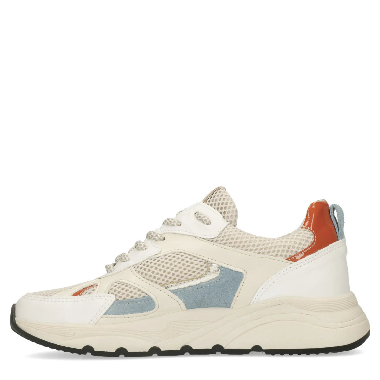 Beige Leren Sneakers Met Blauwe Details^Sacha Flash Sale