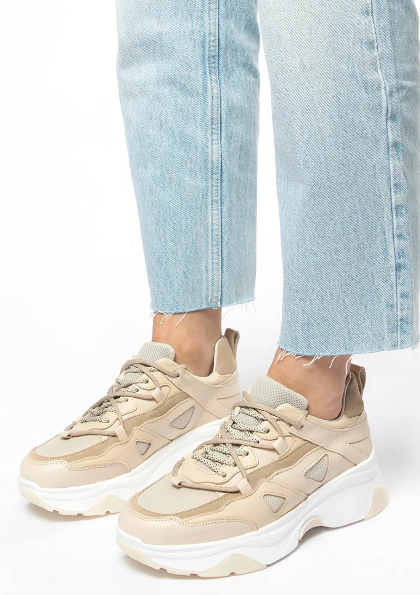 Deze Beige Sneakers Van Sacha Zijn De Perfecte Nude Sneakers Om Toe Te Voegen Aan Je Collectie. De Dubbele Veters Geven Deze Sneakers Een Extra Touch. De Sneakers Zijn Aan De Binnen- En Buitenkant Gemaakt Van Leer. De Sneakers Hebben Een Dikke Zool Van 3 Cm Hoog En Een Hakhoogte Van 5 Cm. Maak Gebruik Van De Juiste Onderhoudsproducten.