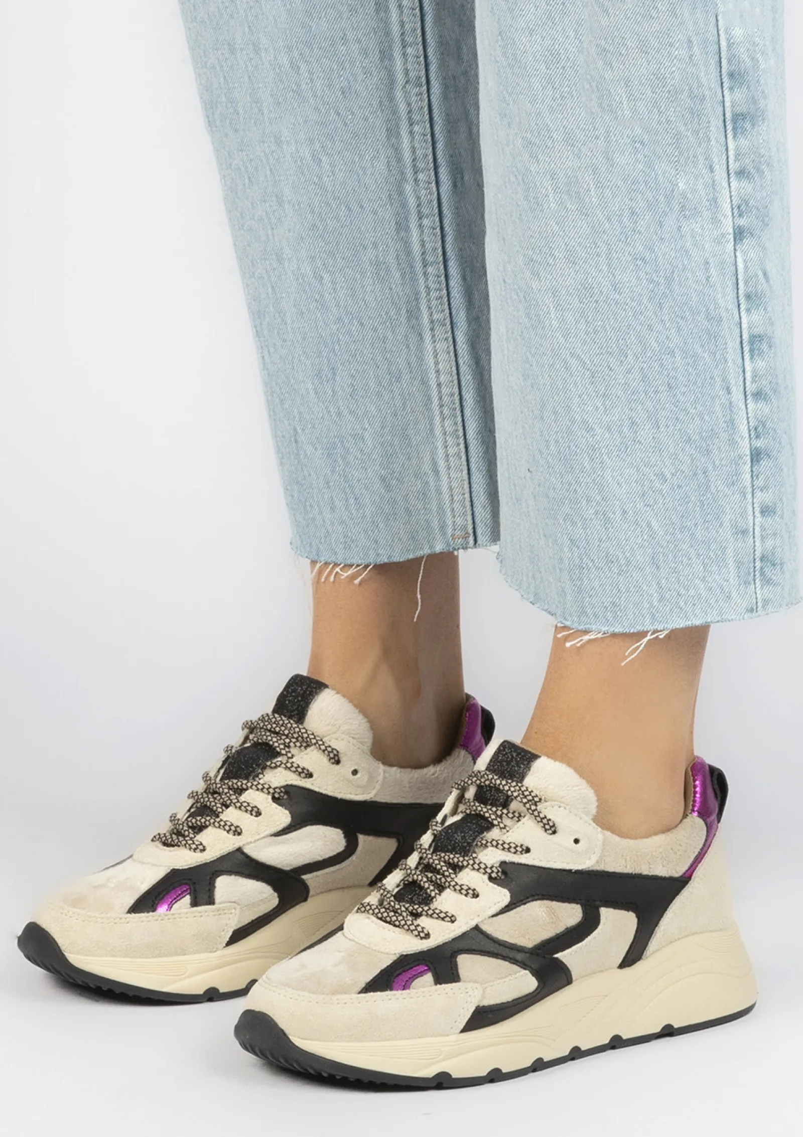 Beige Sneakers Met Zwarte En Fluffy Details^Sacha Best
