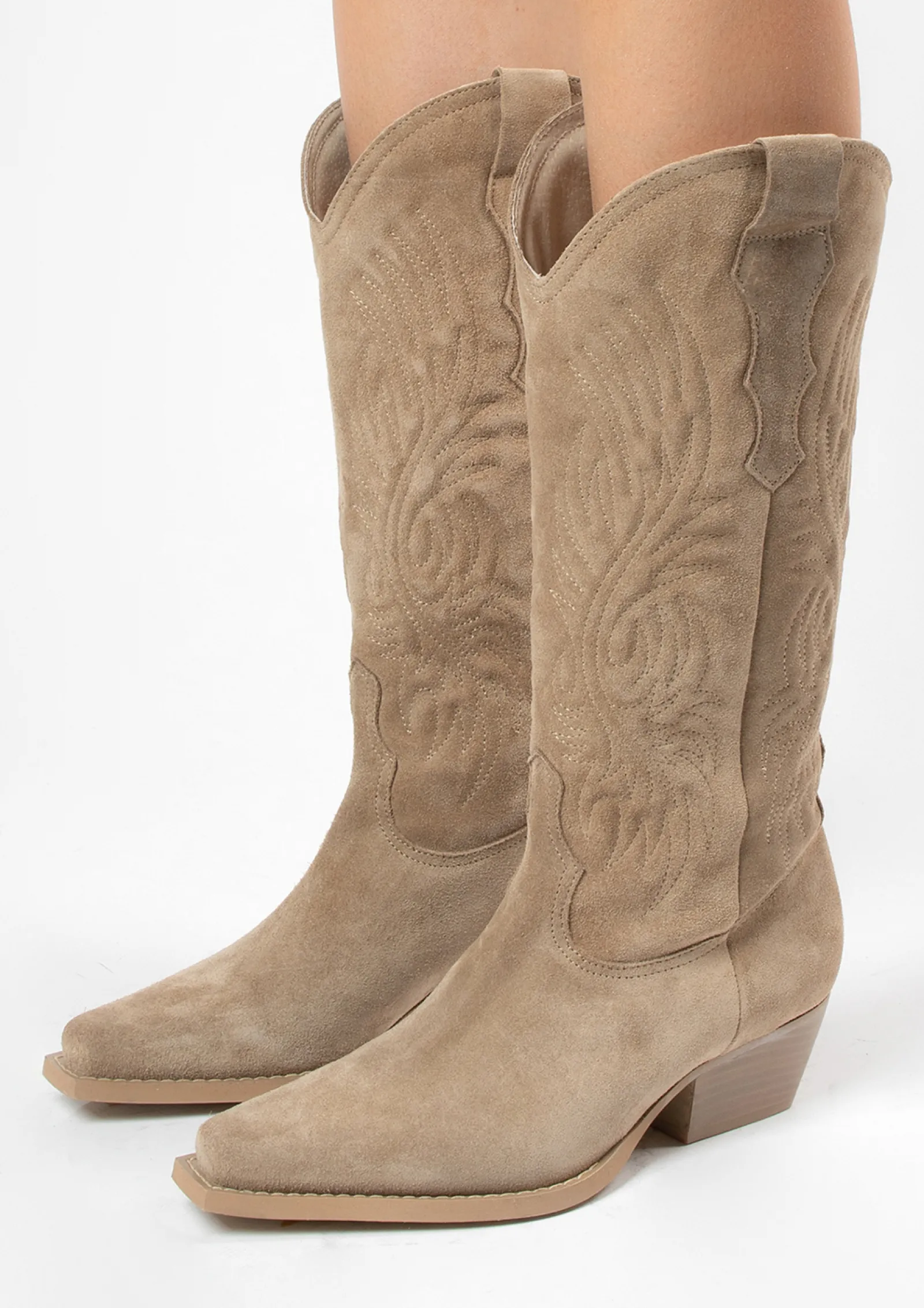 Beige Suede Cowboylaarzen Met Stiksels^Sacha Best Sale