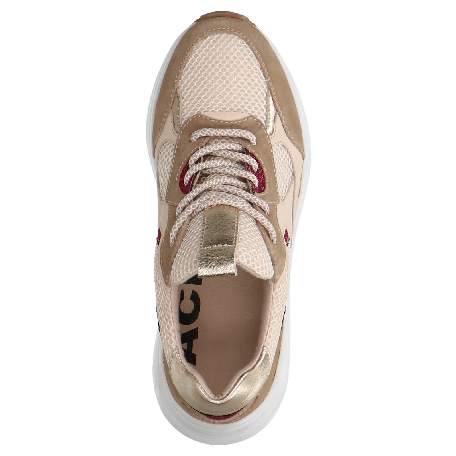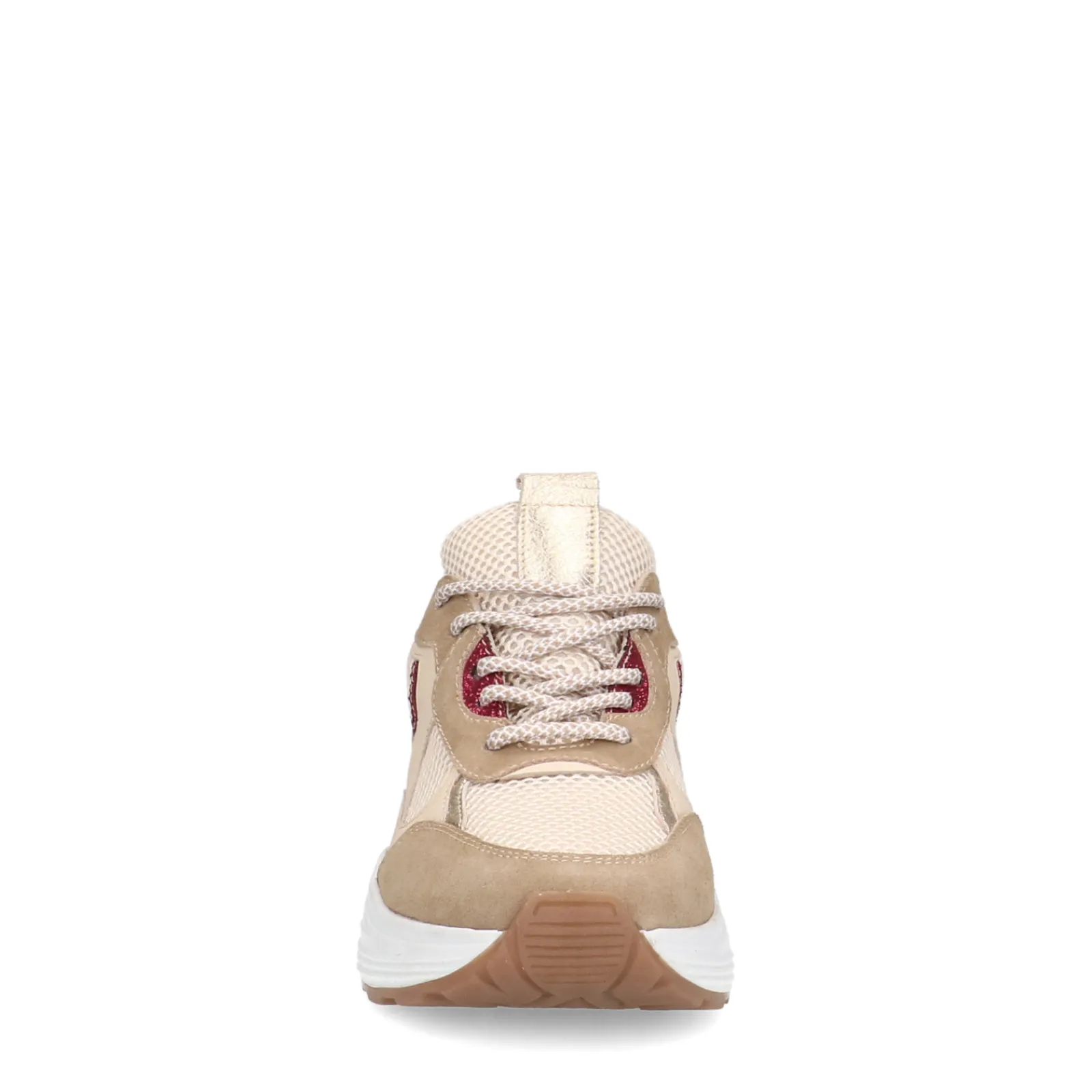 Trendy Beige Sneakers Van Sacha. De Sneakers Hebben Roze Glitter Details Met Aan De Achterzijde Een Goudkleurig Detail. De Buitenzijde Van De Sneakers Zijn Gemaakt Van Suede Met Beige Tinten. De Sneakers Hebben Beige Met Witte Veters En Een Chunky Plateau Zool Van 4 Cm. Maak Gebruik Van De Juiste Onderhoudsproducten!