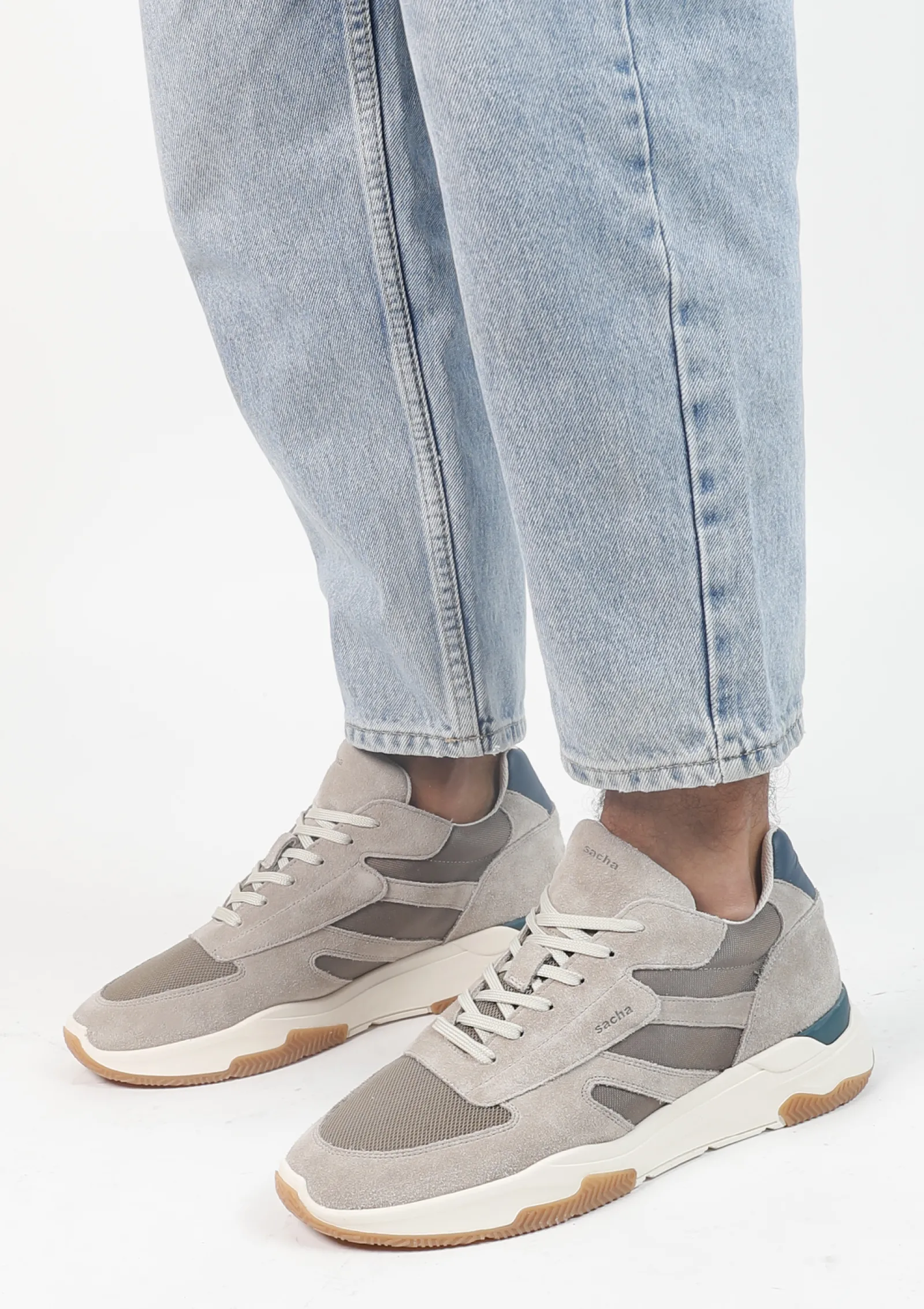 Beige Suede Sneakers Van Sacha. De Sneakers Zijn Aan De Buitenzijde Gemaakt Van Leer En Suede, En Hebben Aan De Achterzijde Een Blauw Detail. De Sneakers Hebben Een Doorlopende Zool Van 3 Cm Dik Met Een Lichtverhogende Hak Van 5 Cm. De Sneakers Hebben Twee Veteropties, Zowel Witte Als Grijze Veters! Good To Know: De Binnenzool Is Uitneembaar. Maak Gebruik Van De Juiste Onderhoudsproducten Zoals De Collonil Carbon Pro 400 Ml.