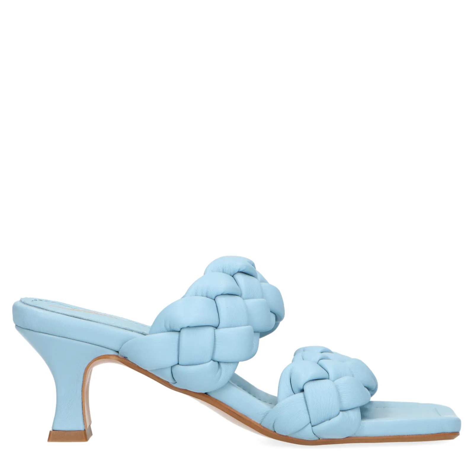 Blauwe Leren Muiltjes Met Gevlochten Banden^Sacha Sale