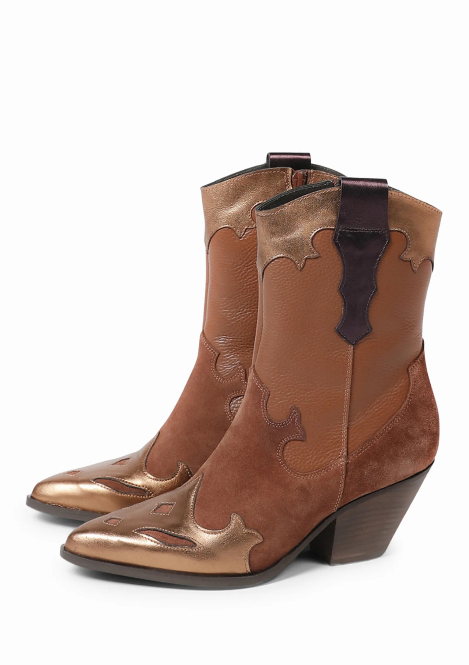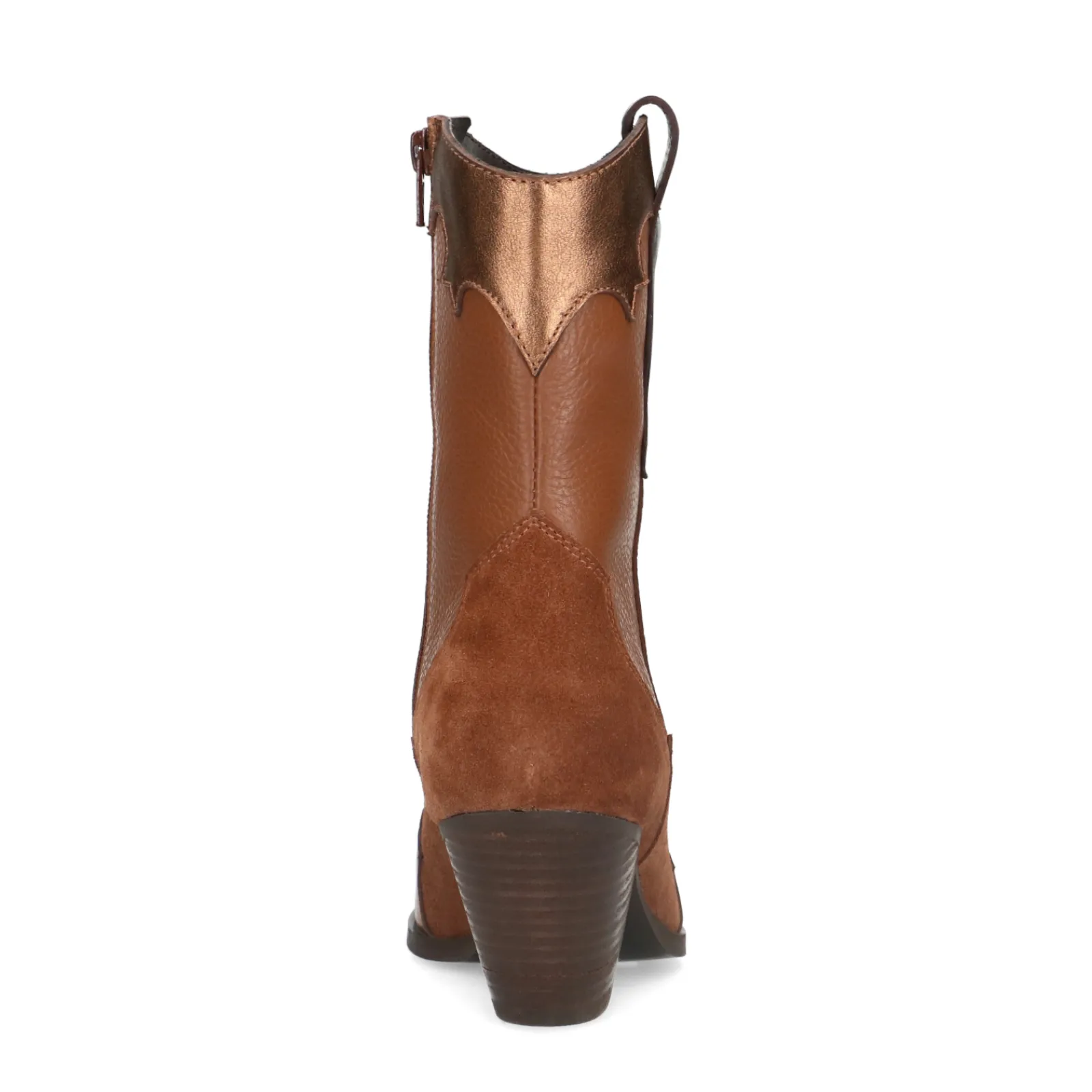 Bruine Leren Cowboylaarzen Met Brons Metallic Details^Sacha Discount
