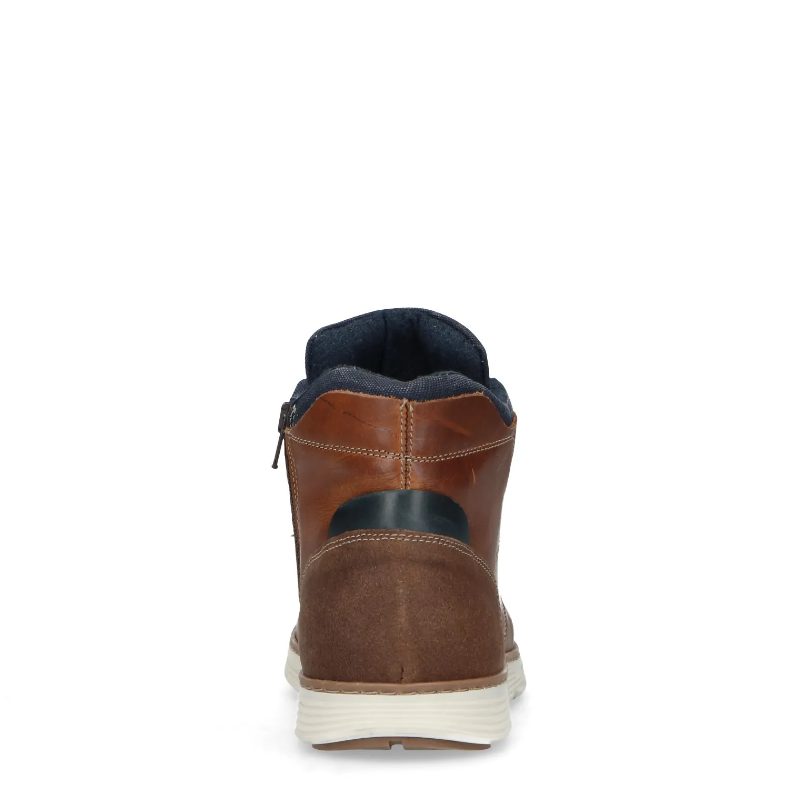 Bruine Leren Veterboots Uit De Men Casual Collectie Van Sacha. De Buitenkant Is Gemaakt Van Leer En De Binnenkant Van Synthetisch Materiaal. Je Kunt De Boots Gemakkelijk Aan Doen Middels De Rits En Strakker Trekken Met De Veters. De Boots Hebben Verschillende Donkerblauwe Accenten Waardoor Ze Een Casual Uitstraling Krijgen. Ook Zit Er Op De Hiel Een Bruin Detail. Good To Know: Het Voetbed Is Uitneembaar. Combineer Ze Onder Een Donkere Jeans Met Sweater Of Shirt Voor Een Casual Look. Maak Gebruik Van De Juiste Onderhoudsproducten.