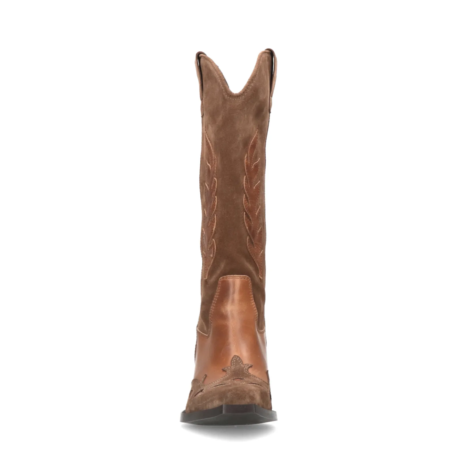 Bruine Suede Cowboylaarzen Met Cognac Details^Sacha Flash Sale