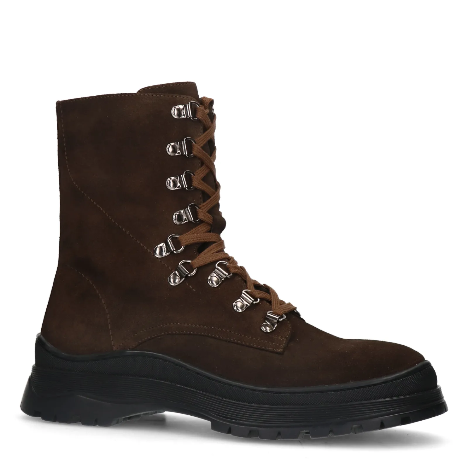 Deze Bruine Veterboots Van Sacha Hebben Een Hoog Model En Een ‘Outdoors’-Feeling. De Boots Zijn Aan De Buitenzijde Gemaakt Van Suede En Aan De Binnenzijde Van Textiel. De Enkelboots Hebben Een Golvende Zwarte Zool Van 3 Cm, Een Schachthoogte Van 20 Cm En Een Schachtomtrek Van 29 Cm. De Heren Veterboots Hebben Zilverkleurige Ringetjes Bij De Veterogen Als Detail, En Een Handige Rits Aan De Binnenzijde. Maak Gebruik Van De Juiste Onderhoudsproducten.