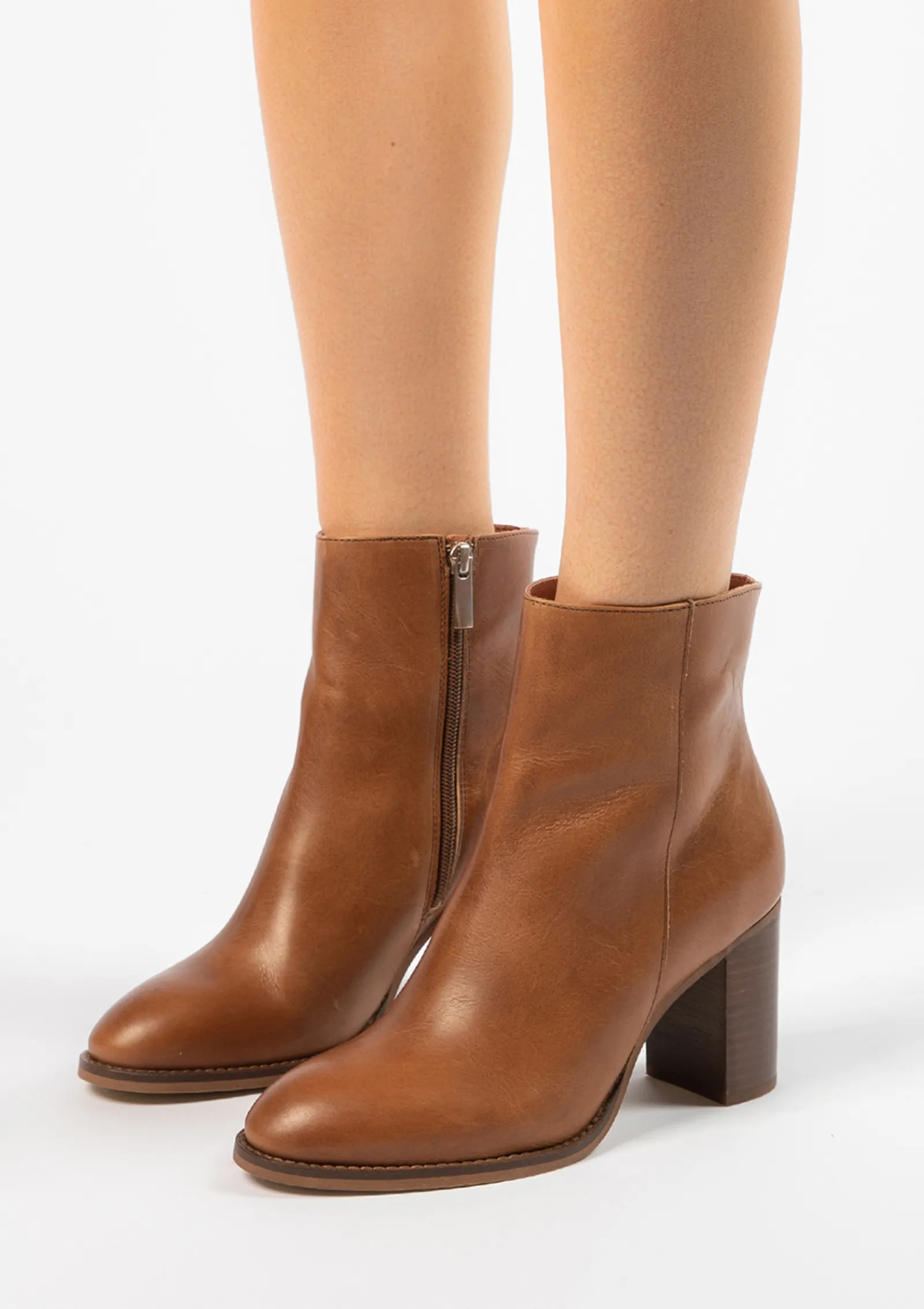 Cognac Enkellaarsjes Met Hak^Sacha New