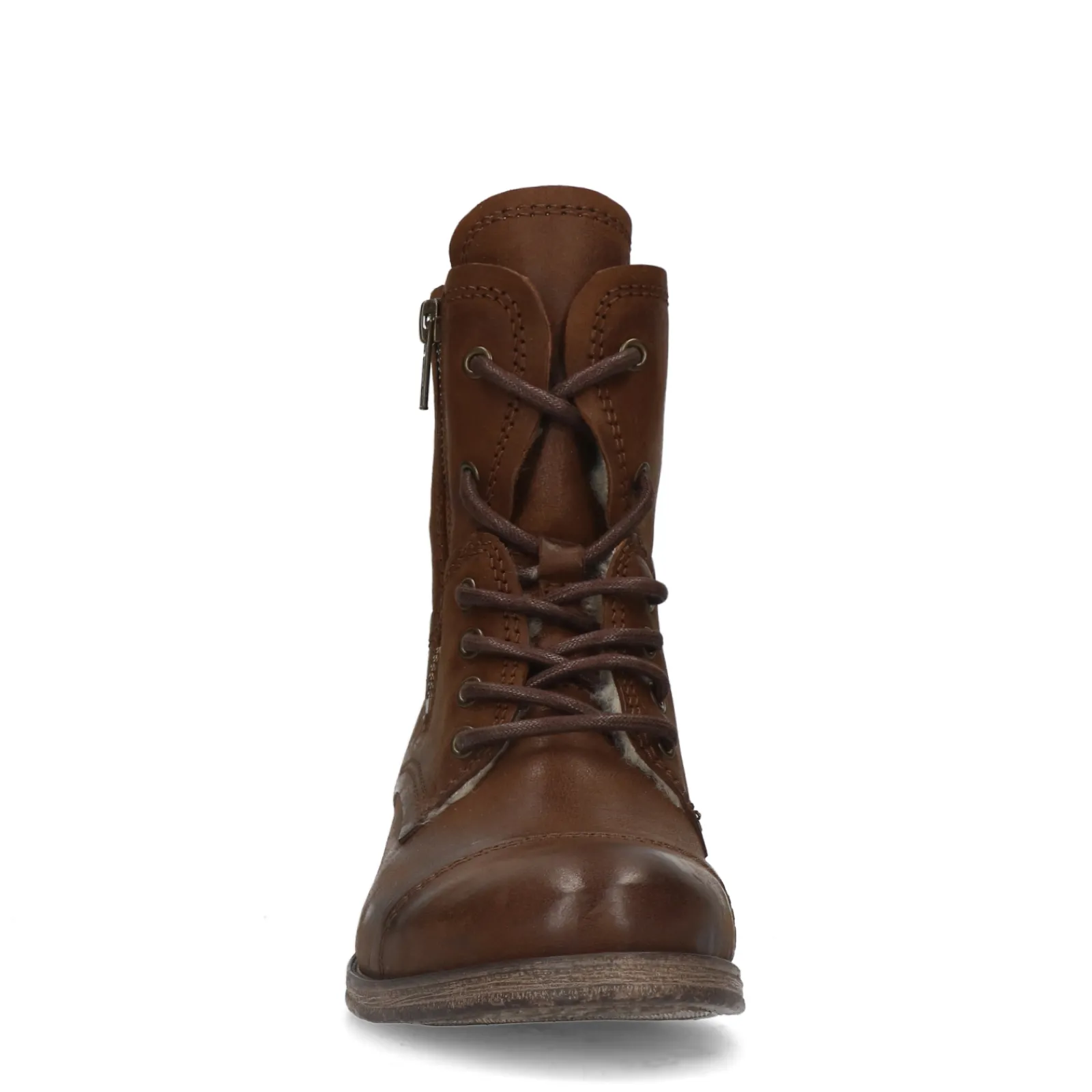 Cognac Leren Veterlaarsjes Van Sacha Met Een Binnenzijde Van Off White Imitatiewol. De Klassieke Enkellaarsjes Hebben Een Korte Rits Aan De Buitenzijde Voor Een Gemakkelijke Instap. De Schachtomtrek Meet 28 Cm En De Schachthoogte 16 Cm. Maak Gebruik Van De Juiste Onderhoudsproducten Om Het Leer Te Beschermen En Verzorgen.