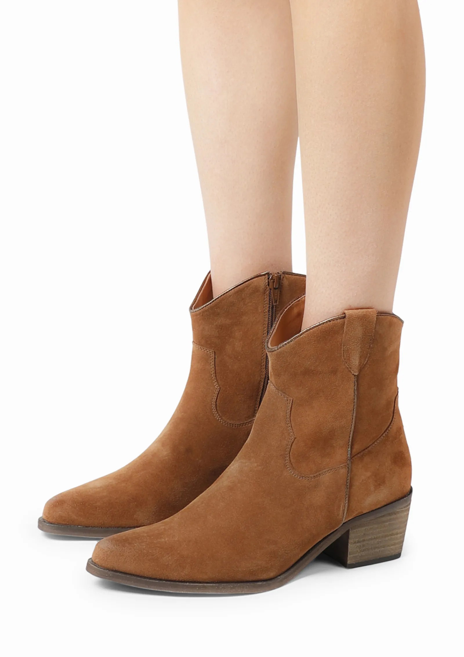 Deze Cognac Suede Lage Boots Van Sacha Zijn Perfecte Basic Cowboylaarzen. De Western Boots Zijn Aan De Buitenkant Geheel Gemaakt Van Suede Met Een Subtiele Brons Metallic Afwerking. De Laarzen Hebben Een Schachthoogte Van 14 Cm, Een Schachtomtrek Van 29 Cm En Een Hakhoogte Van 5 Cm. De Beige Enkellaarsjes Hebben Een Puntige Neus. Maak Gebruik Van De Juiste Onderhoudsproducten!
