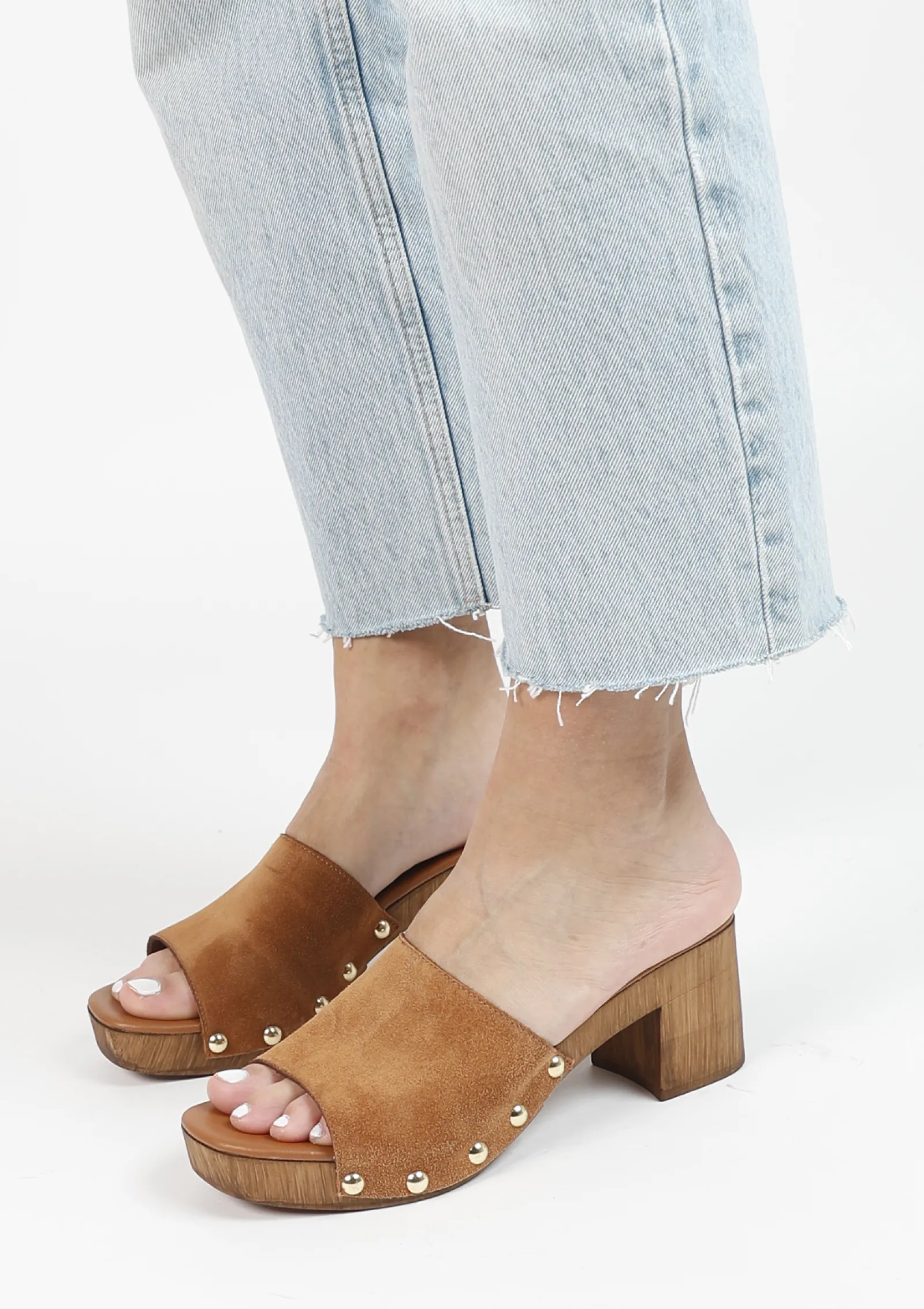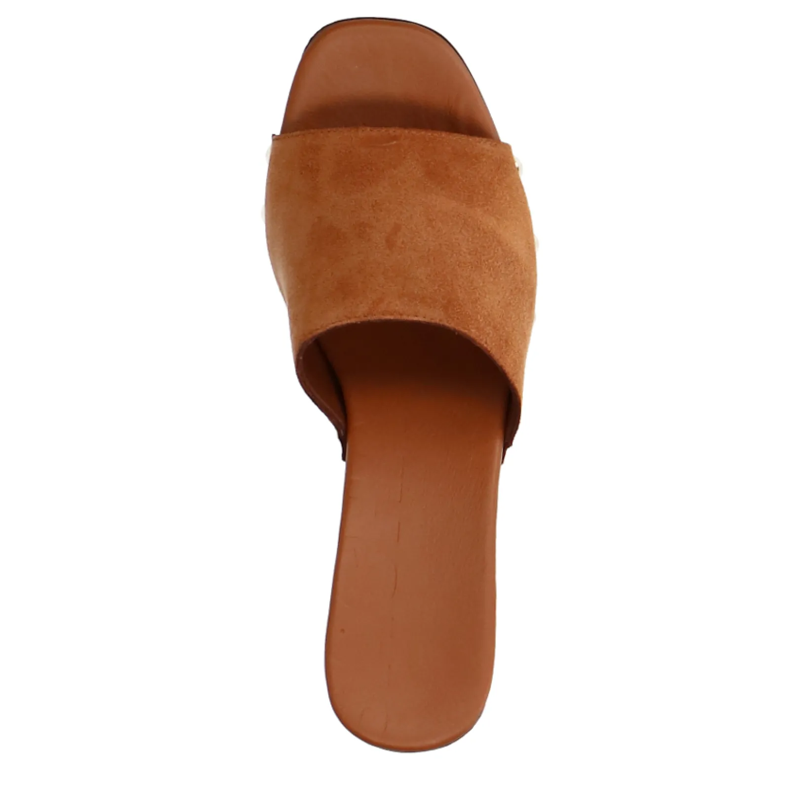 Cognac Suede Muiltjes Met Houten Hak^Sacha Best Sale
