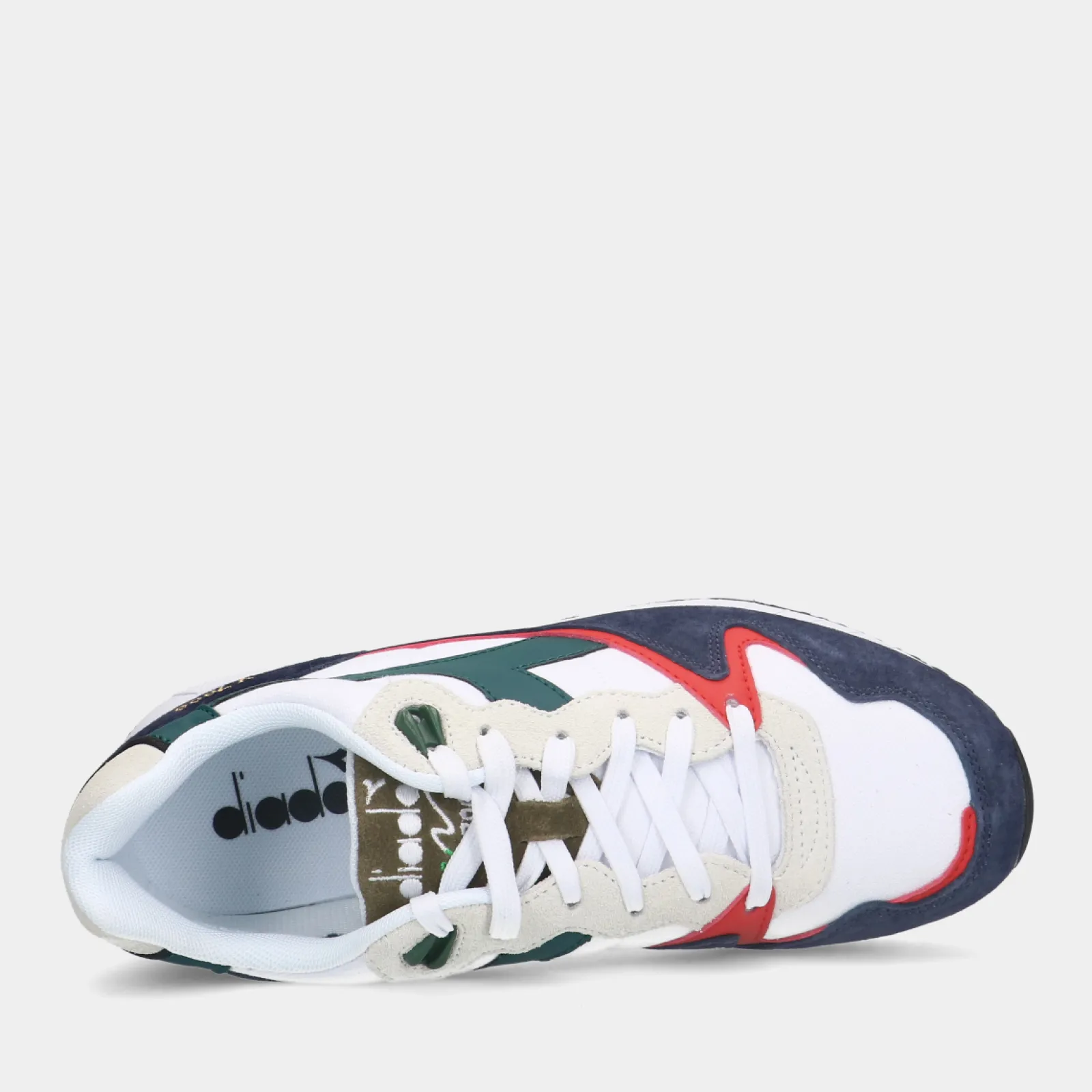 V7000 Navy Low-Top Damessneakers Van Het Merk Diadora. De Retro Running Sneakers Hebben Een Combinatie Van Een Sportieve Attitude Met Een Vleugje Urban Lifestylee. De Samenstelling Van Blauw, Groen, Rood En Wit Vult Dit Karakter Aan. De Upper Heeft Een Combinatie Van Suede, Canvas En Nubuck Details. Het Merk Opdruk Aan De Hiel Is Goudkleurig.