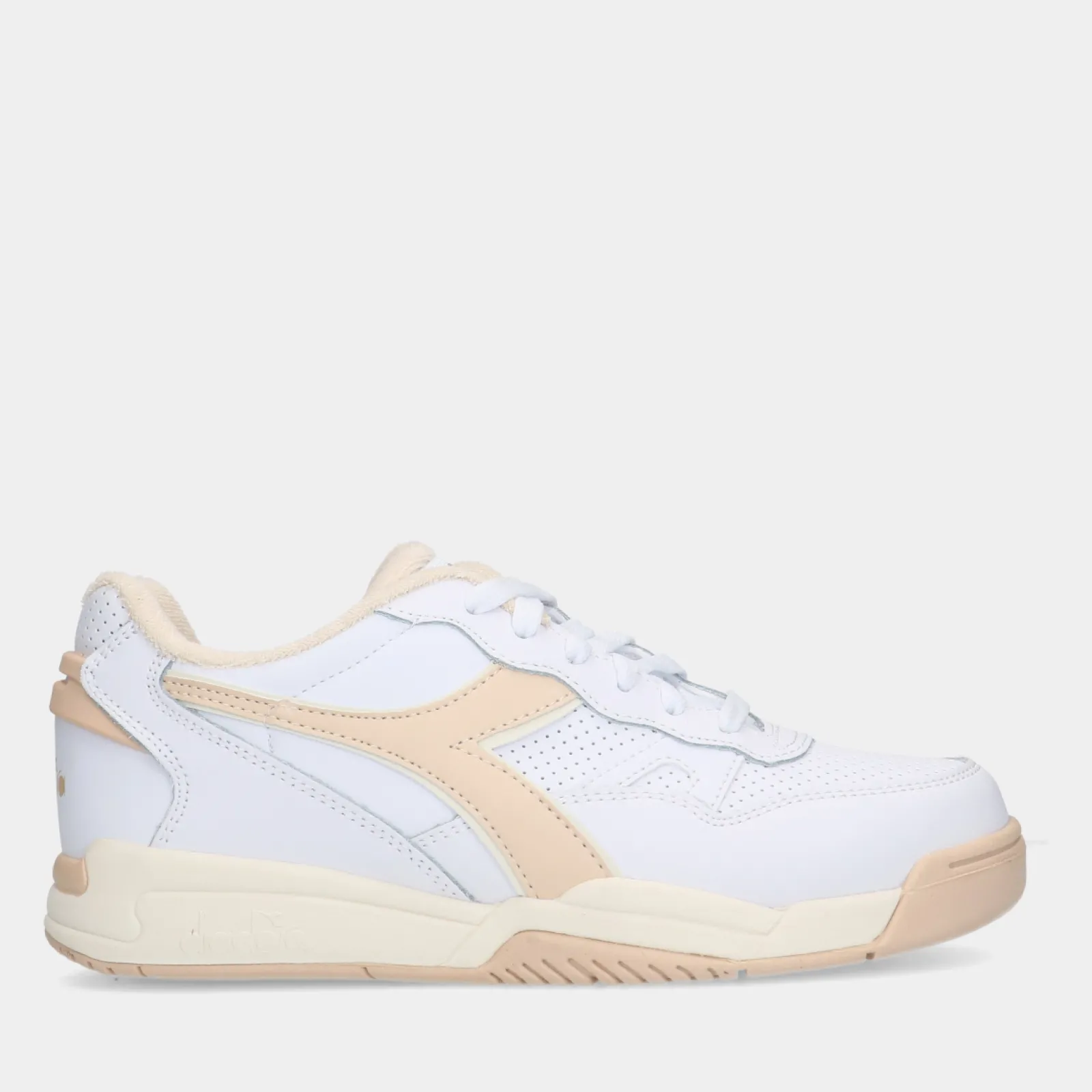 Winner White / Pristine Dames Sneakers Van Het Merk Diadora. De Iconische Sneakers Hebben Een Sportief Design Met Een Urban Twist. De Buitenzijde Van De Lage Sneakers Hebben Pristine Leren Overlays. De Dames Sneakers Hebben Een Merkembleem Op De Tong En Een Golvende Zool.