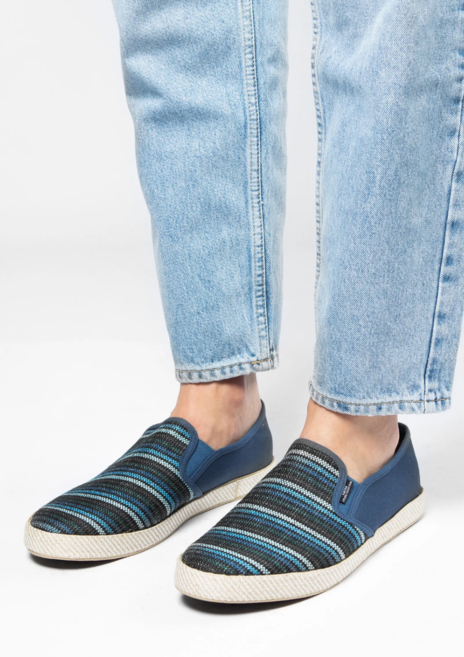 Donkerblauwe Canvas Loafers Met Strepen^Sacha Outlet