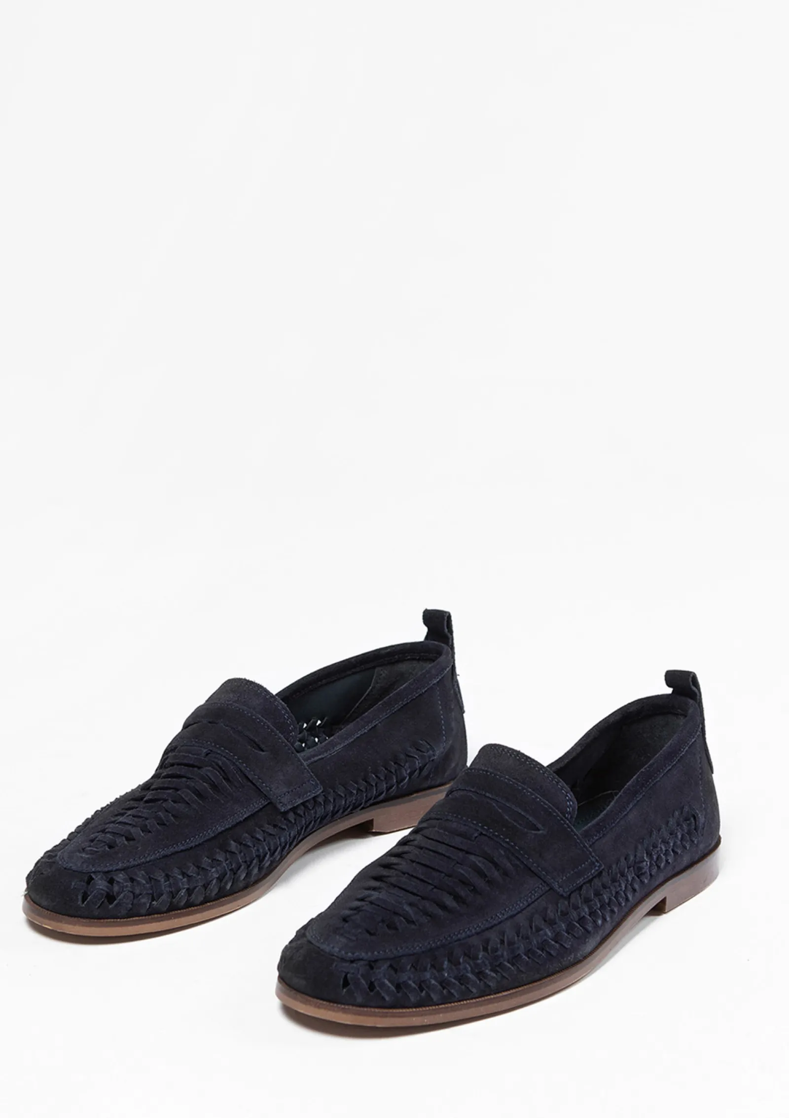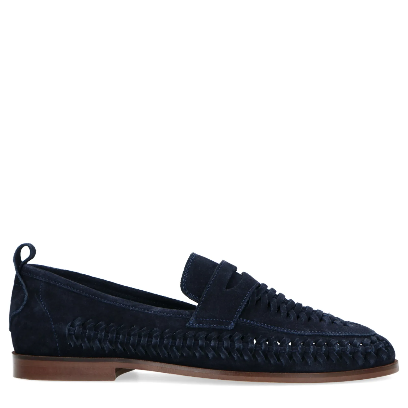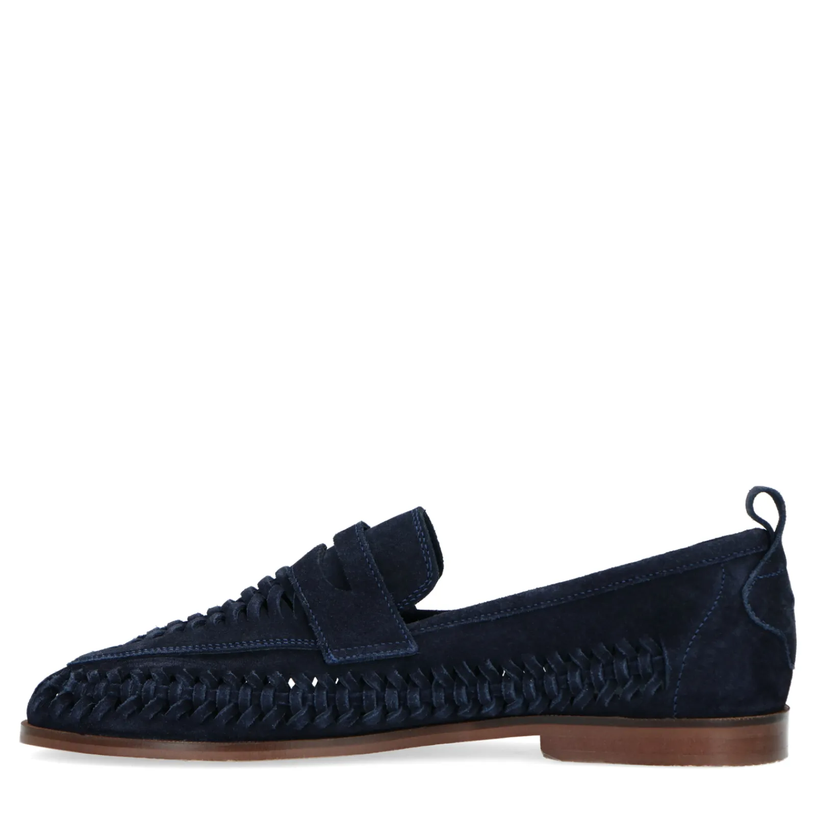 Donkerblauwe Suede Loafers Met Gevlochten Detail^Sacha Sale