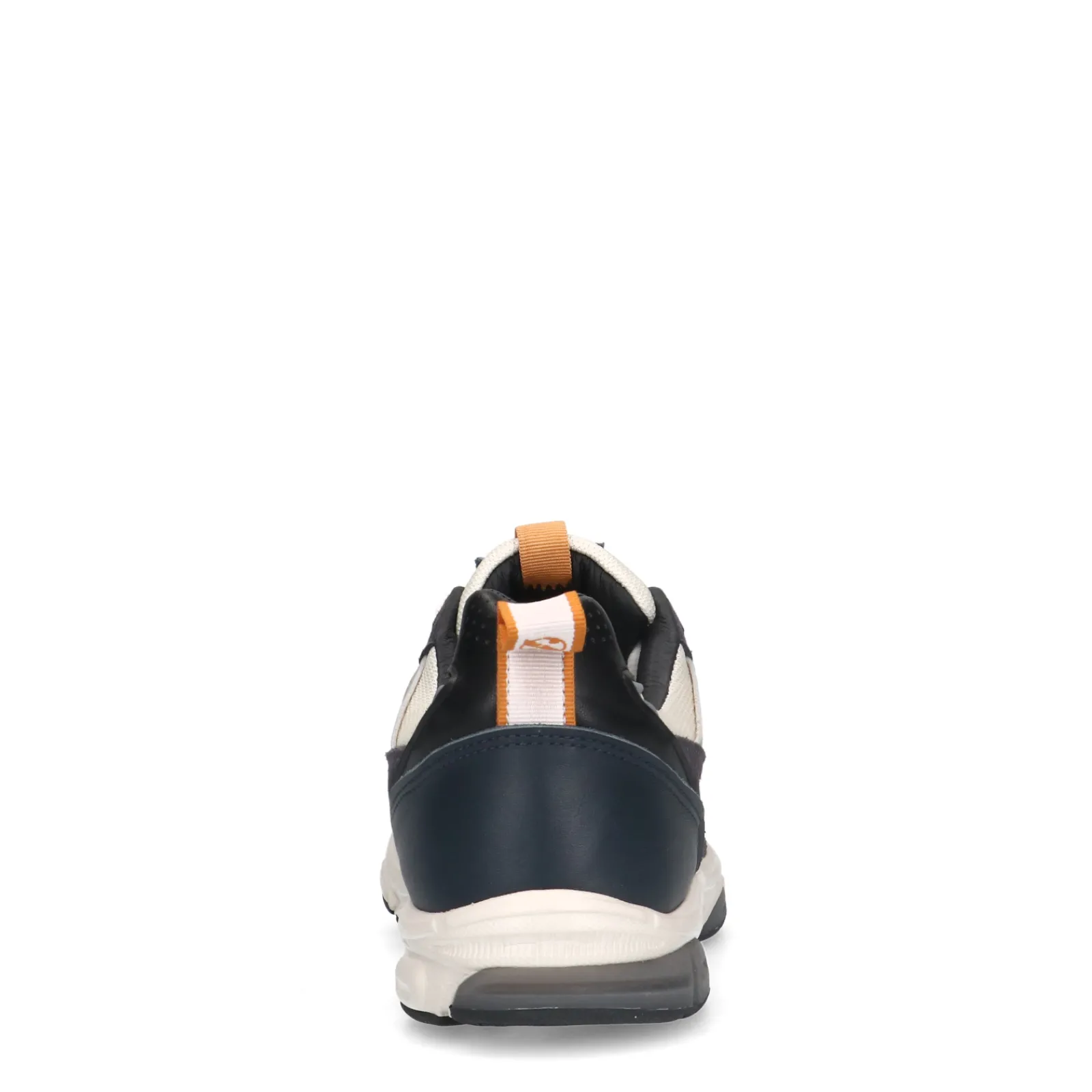 De Lage Heren Sneakers Hebben Een Donkerblauw Suede Design Met Grijze Details Van Leer Of Mesh Materiaal. Het Gebruik Van Verschillende Material Zorgt Voor Een Speels Design. De Zool Van 2 Cm Dik Heeft Een Sportief Design. Maak Gebruik Van De Juiste Onderhoudsproducten.