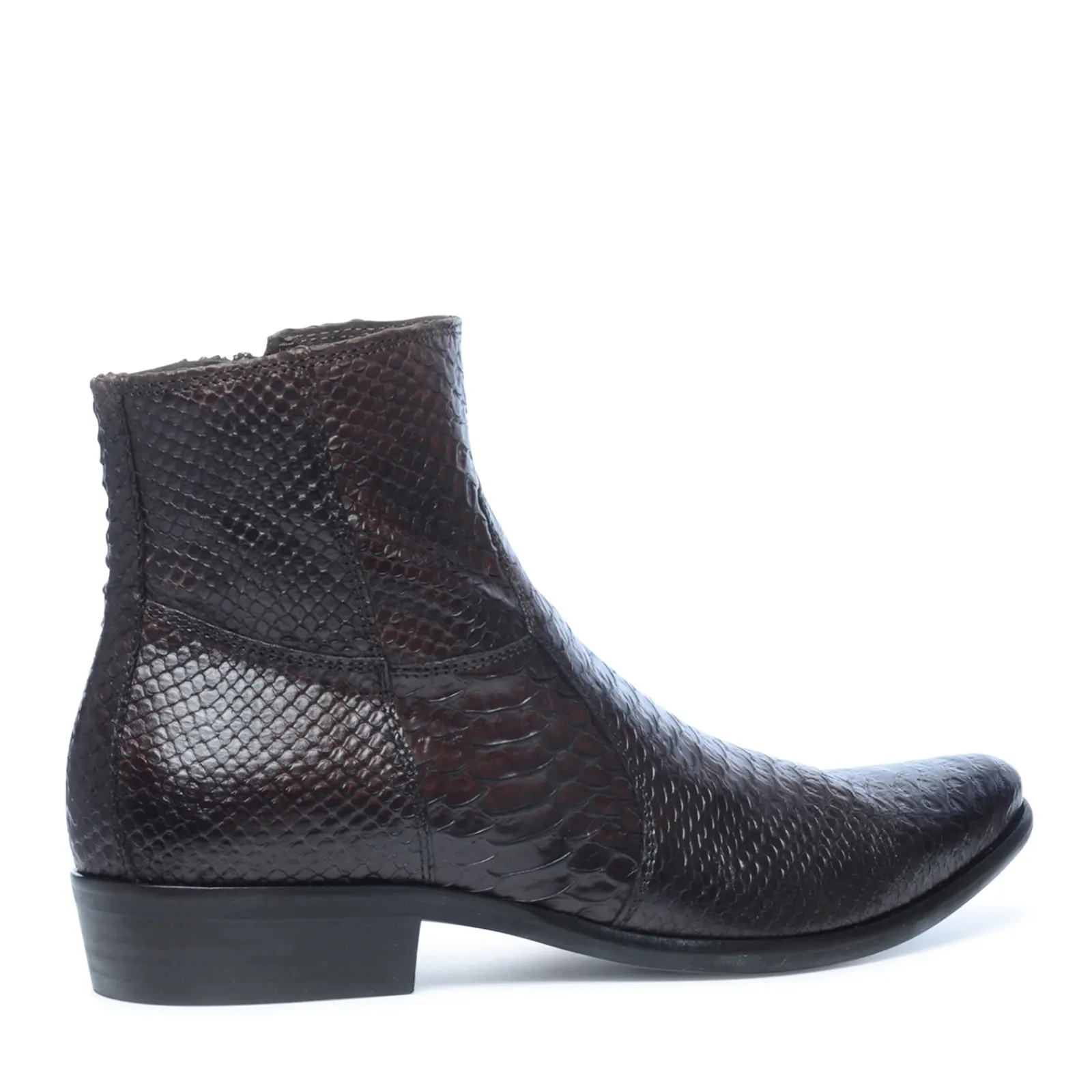 Leren Lage Boots Zijn Een Absolute Must Voor De Man, Deze Schoenen Kunnen Zowel Chique Als Casual Gedragen Worden. Dit Exemplaar Is Van Bruin Leer En Heeft Een Slangenprint Over De Gehele Schoen. Combineer De Boots Voor Een Stoere Look Met Een Destroyed Jeans En Blouse. Liever Een Klassieke Look? Combineer De Schoenen Dan Met Een Nette Jeans. De Boots Hebben Een Spitse Neus. De Gehele Schoen Is Van Leer.