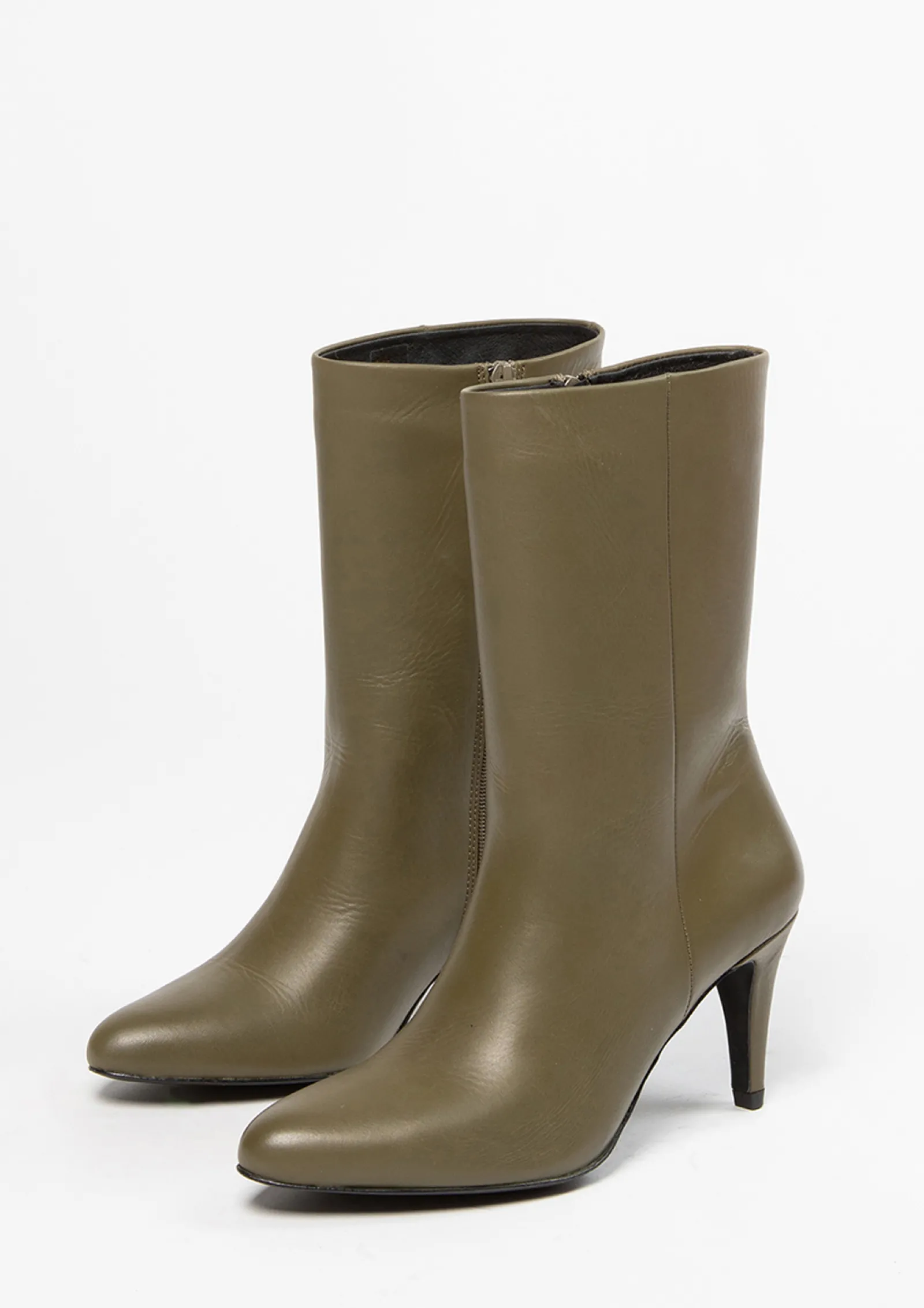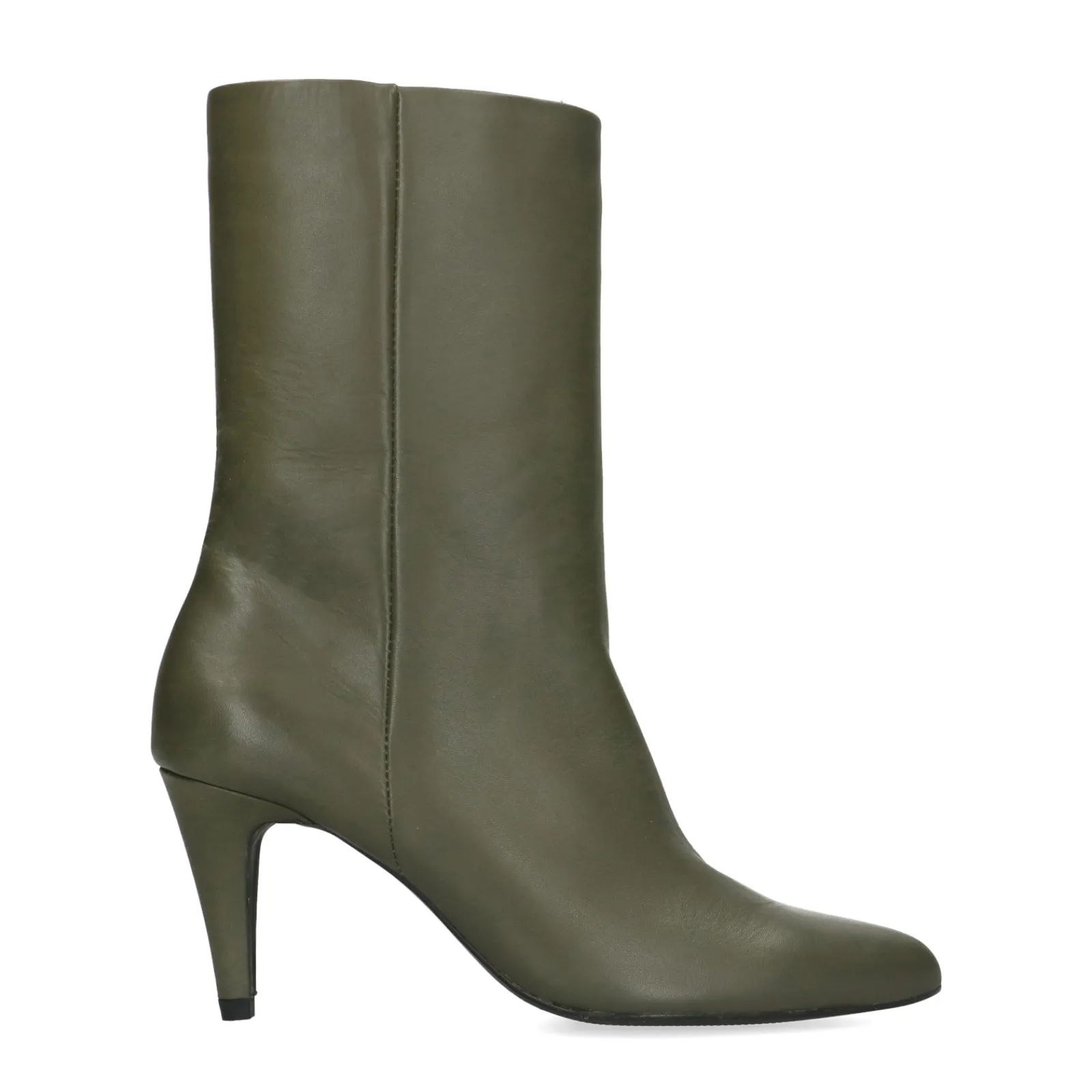 Donkergroene Leren Enkellaarsjes Met Naaldhak^Sacha Fashion