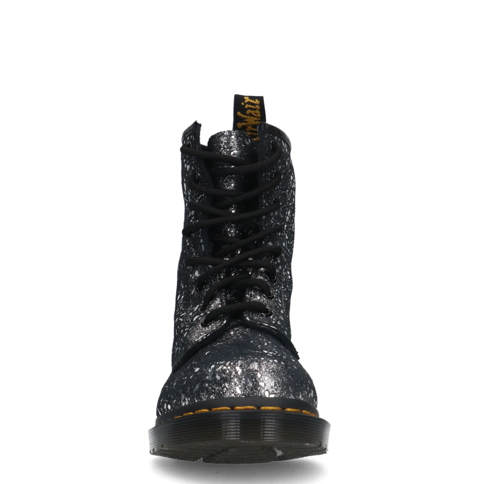 Deze Ultieme 140 Eyecatchers Van Dr. Martens Zijn Gemaakt Van Een Schitterende Suede Metallic Materiaal. De Zilverkleurige Metallic Buitenkant Geeft De Stoere Veterboots Karakter. De Enkelboots Hebben 8 Veterogen, Een Goodyear-Zoolrand En Gele Stiksels. De Zooldikte Is 2 Cm Hoog En De Hak Heeft Een Hoogte Van 3 Cm. Maak Gebruik Van De Juiste Onderhoudsproducten.