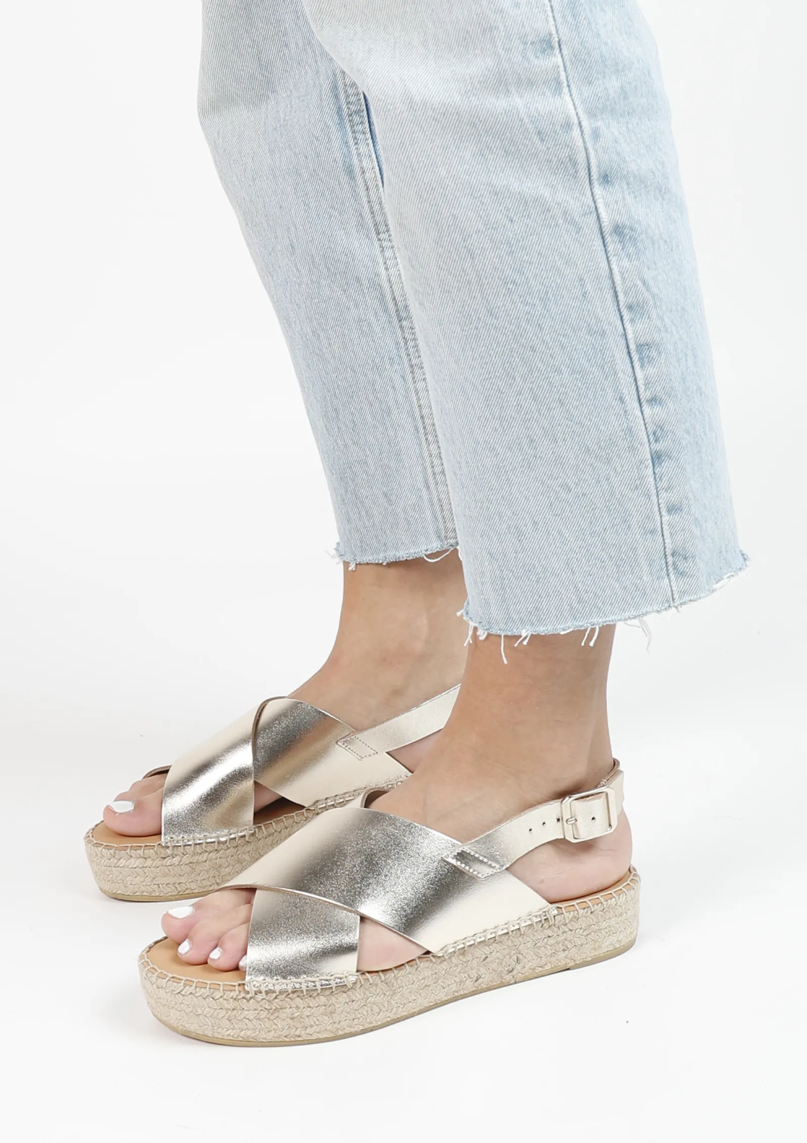 Summer Ready Met Deze Goudkleurige Leren Plateau Sandalen Van Sacha! De Sandalen Zijn Aan De Binnen- En Buitenzijde Gemaakt Van Leer. De Plateau Zool Is Gemaakt Van Gewoven Touw Met Een Hoogte Van 4 Cm. Maak Gebruik Van De Juiste Onderhoudsproducten Voor Zo Lang Mogelijk Plezier!