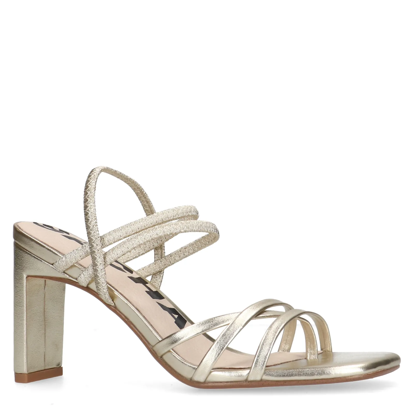 De Sacha It-Haksandaal In Een Metallic Goudkleurige Uitvoering! De Bovenste Bandjes Zijn Gemaakt Van Elastiek, Waardoor Je De Sandalen Gemakkelijk Kan Aan- En Uittrekken. De Binnenzijde Is Gemaakt Van Leer. De Hak Heeft Een Hoogte Van 9 Cm En Een Afgeronde Vierkante Neus. Maak Gebruik Van De Juiste Onderhoudsproducten!