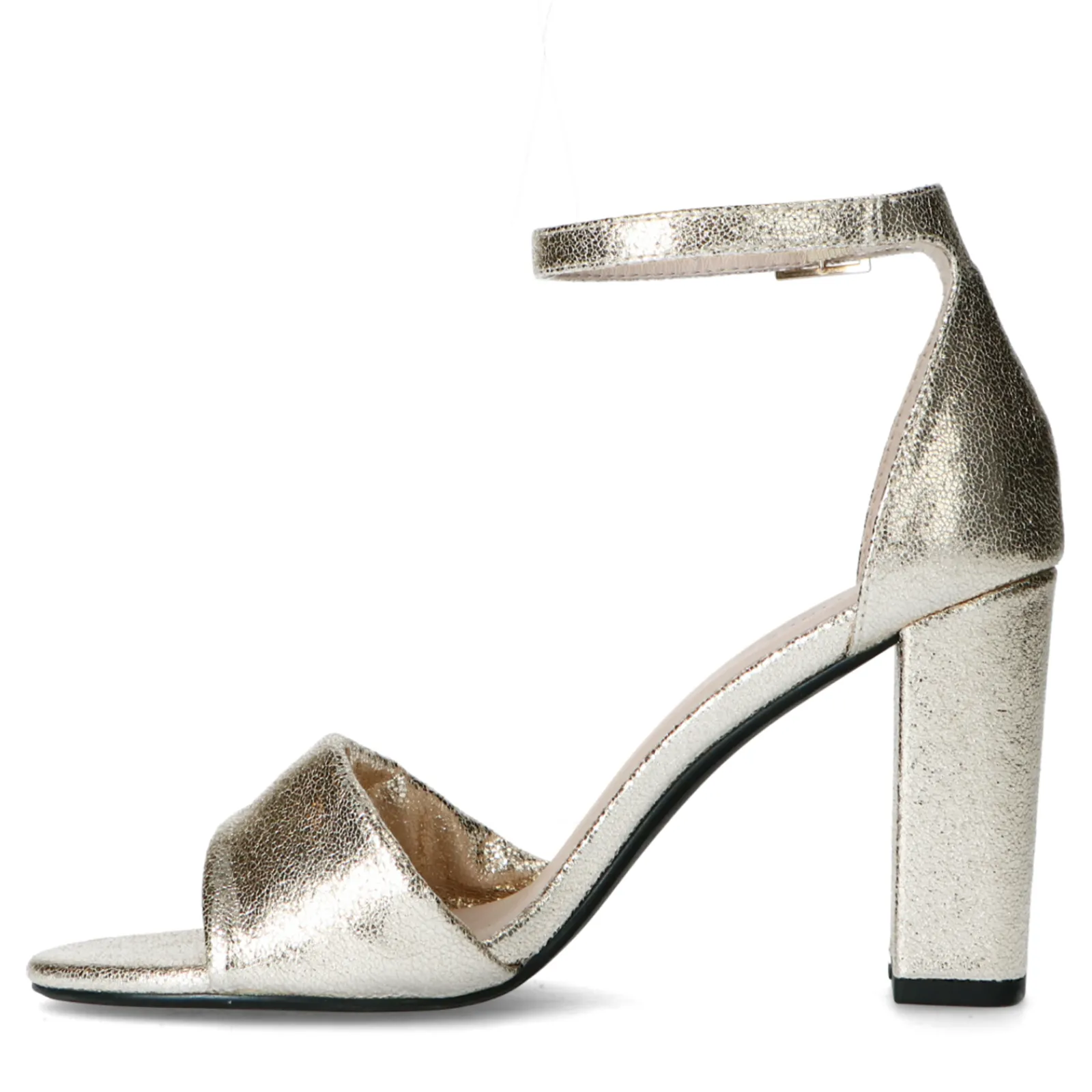 De Trend Van Het Moment: Schoenen In Metallic Tinten. Daarom Zijn Wij Een Groot Fan Van Deze Goudkleurige Sandalen Uit De Women Essentials Collectie Van Sacha. Het Zijn De Perfecte Hakken Als Finishing Touch Van Elk Mooie Party Outfit! Over De Voet Loopt Een Brede Band En Je Sluit De Sandalen Middels Een Gesp Om De Enkel. De Buitenzijde Is Gemaakt Van Synthetisch Materiaal En De Binnenzijde Van Leer. De Hak Heeft Een Hoogte Van 9 Cm. Draag Ze Onder Een Kort Jurkje Met Een Mooie Clutch En Een Paar Goudkleurige Sieraden & Je Party Outfit Is Van Top Tot Teen Gestyled. Maak Gebruik Van De Juiste Onderhoudsproducten.
