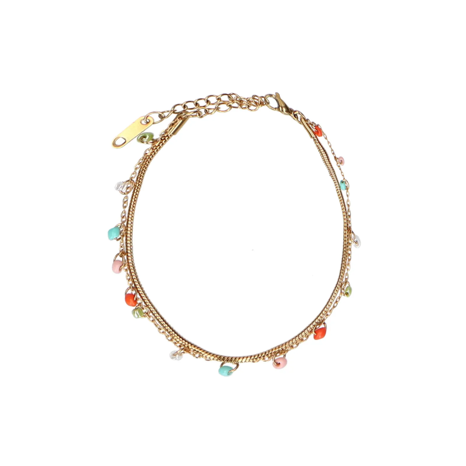 Deze Goudkleurige Stainless Steel Armband Van Sacha Is Een Echte Eyecatcher! De Armband Heeft Unieke Details Door De Kleurrijke Kraaltjes Die Aan Het Armbandje Hangen. Het Armbandje Bestaat Uit Twee Bandjes. Combineer De Armband Met Een Goudkleurige Ketting Voor Een Complete Look. De Armband Heeft Een Totale Lengte Van 23 Cm.