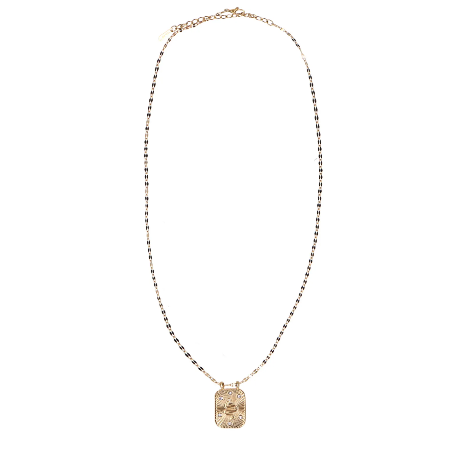 Deze Goudkleurige Ketting Van Sacha Is Gecombineerd Met Een Vierkante Bedel Met Kleine Strass Steentjes. De Totale Lengte Van De Ketting Is 45 Cm. De Ketting Is Gemaakt Van Stainless Steel.