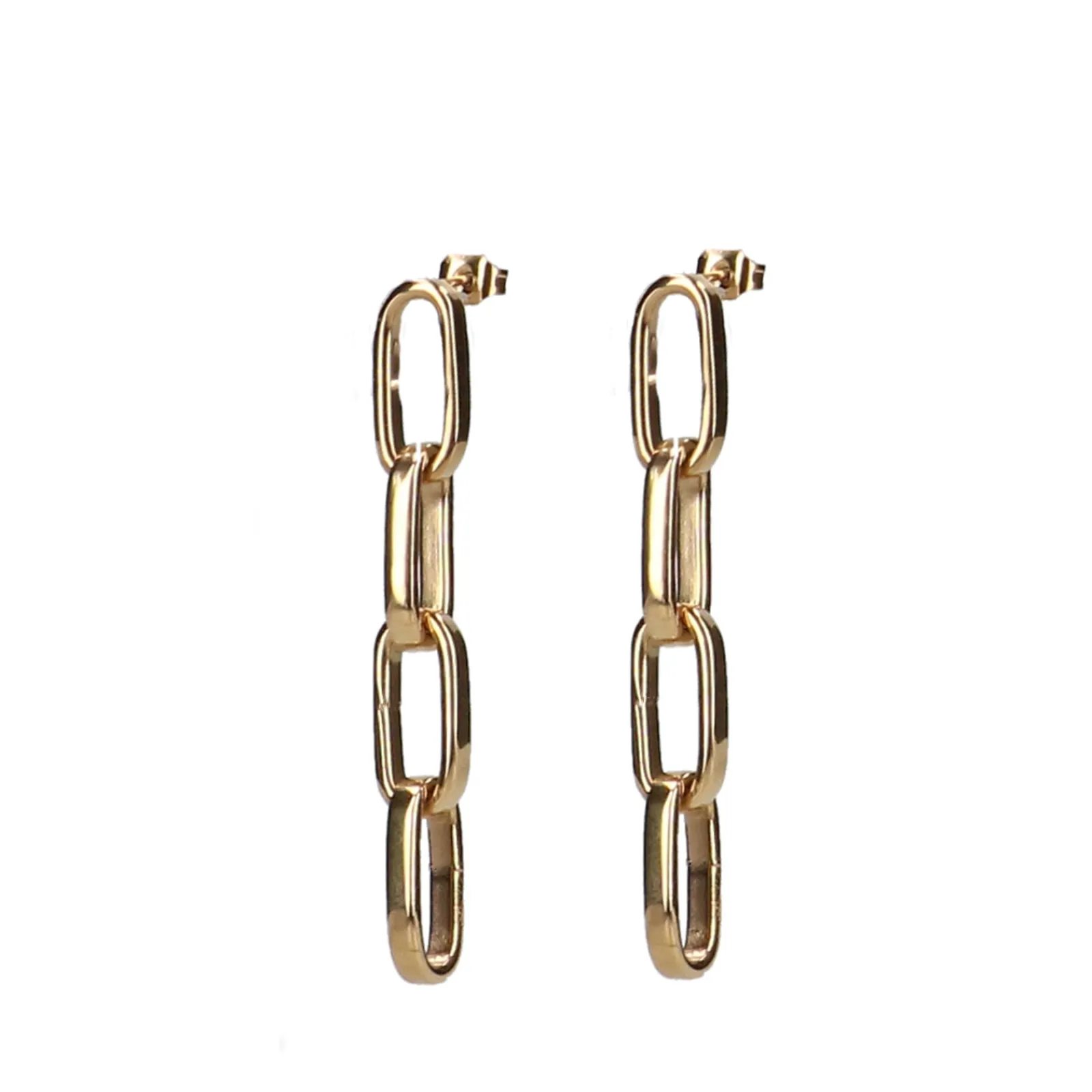 Goudkleurige Stainless Steel Oorhangers Met Ovale Schakels Van Sacha. De Oorhangers Hebben Een Lengte Van 5 Cm.