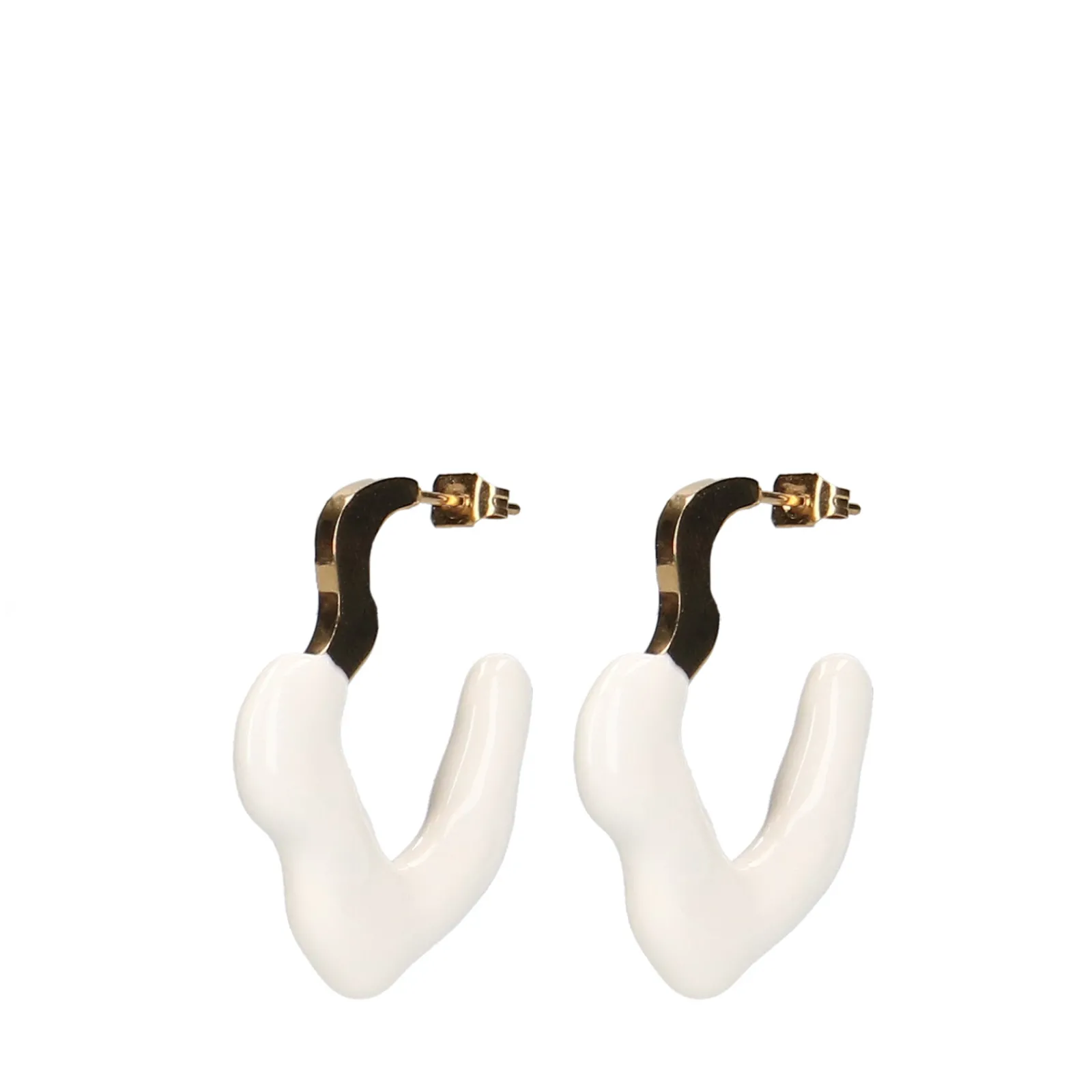 Goudkleurige Twisted Oorringen Met Een Wit ‘Dipped’ Design. De Oorringen Hebben Een Lengte Van 3 Cm En Een Diameter Van 25 Mm.
