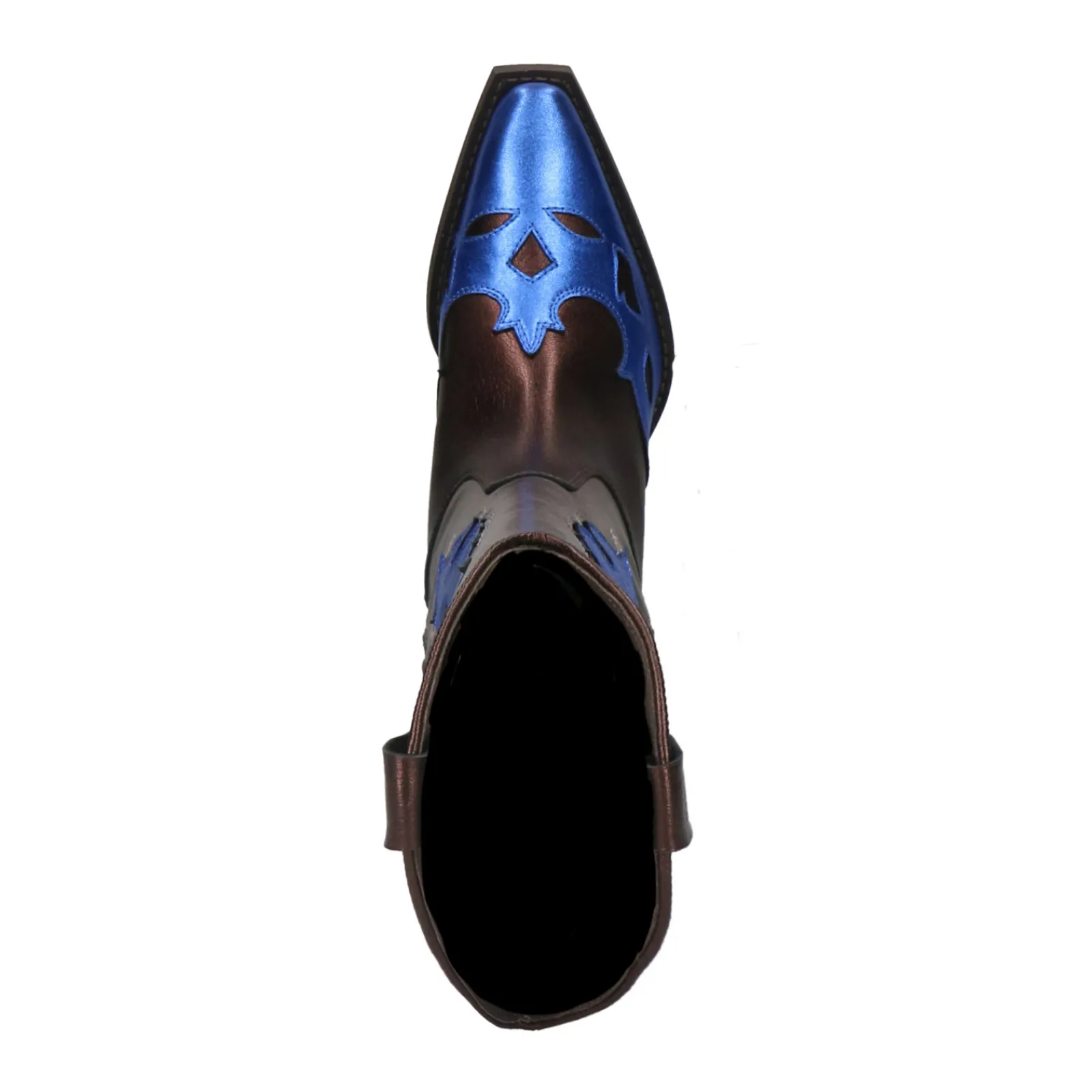 Grijs Metallic Cowboylaarzen Met Blauwe Details^Sacha Online