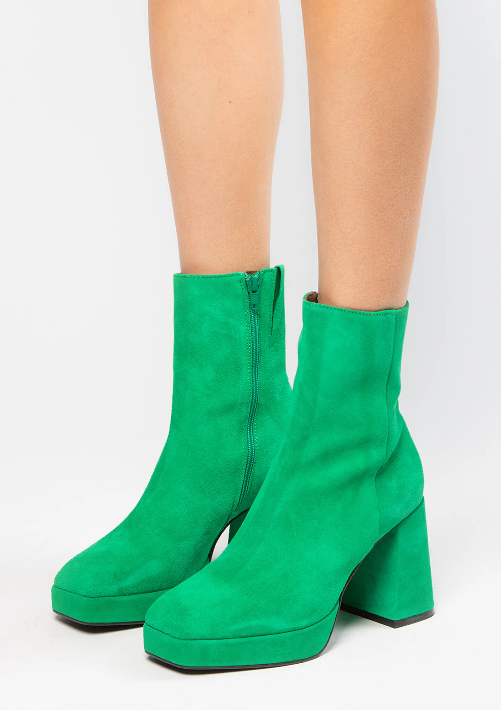 Groene Suede Enkellaarsjes Met Blokhak^Sacha Best Sale