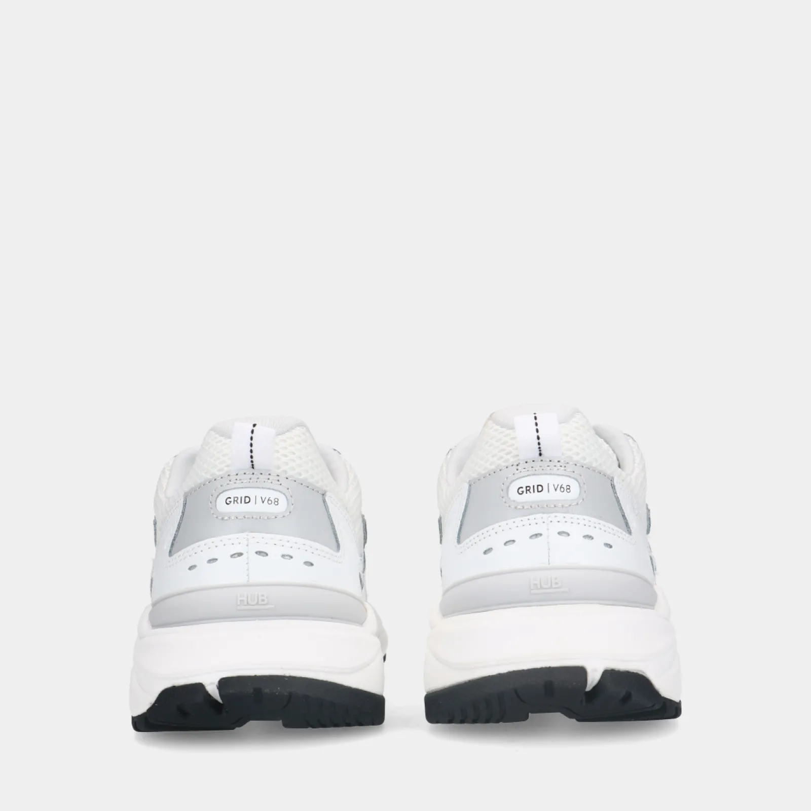 Grid-M L26 White Heren Sneakers Van Het Merk Hub. De Lage Sneakers Hebben Een Tijdloos En Sportief Uiterlijk Dankzij De Mix Van Ademend Mesh, Witte En Grijze Kleuraccenten En Een Golvende Platform Zool Van 4 Cm Dik. De Zijkant Van De Hub Grid-M L26 Sneakers Bevat Het Iconische Z-Stitch Logo. Het Bovenwerk Bestaat Uit Zowel Leer Als Mesh Gemaakt Van 100% Gerecycled Nylon. De Heren Sneakers Hebben Een Eva Zool Met Gel-Insole Voor Extra Comfort.