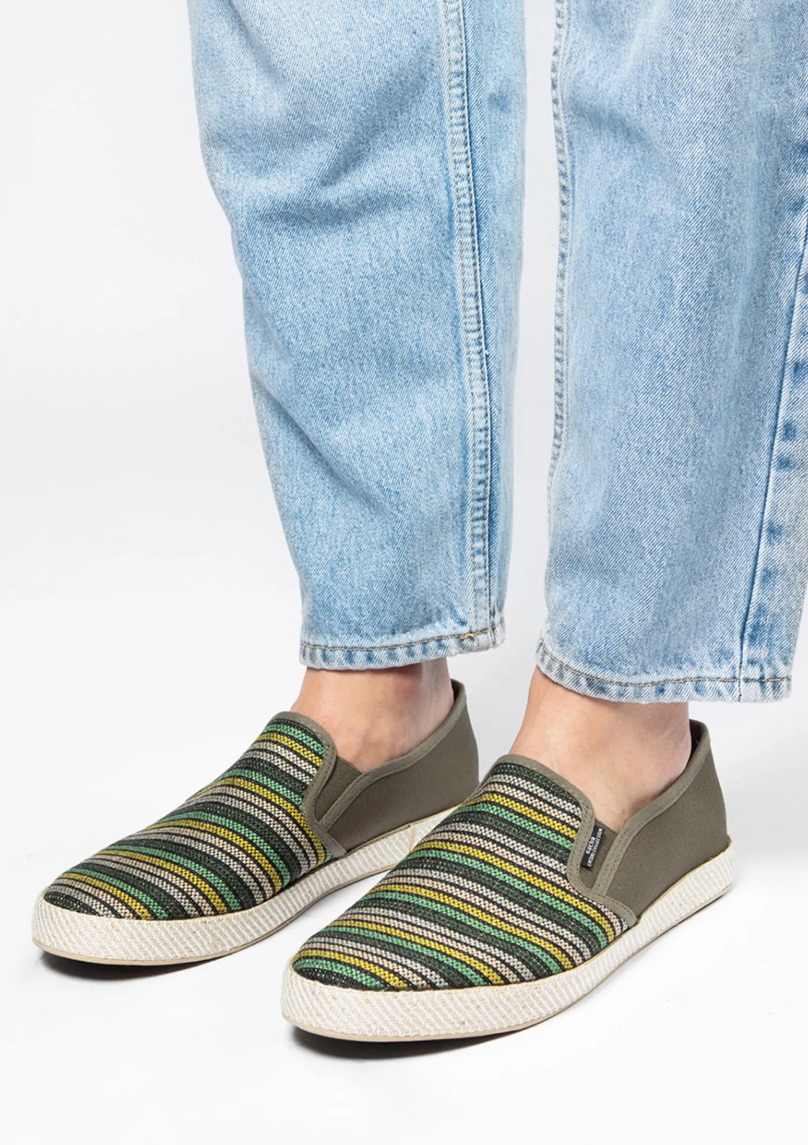 Khaki Canvas Loafers Met Strepen^Sacha Cheap