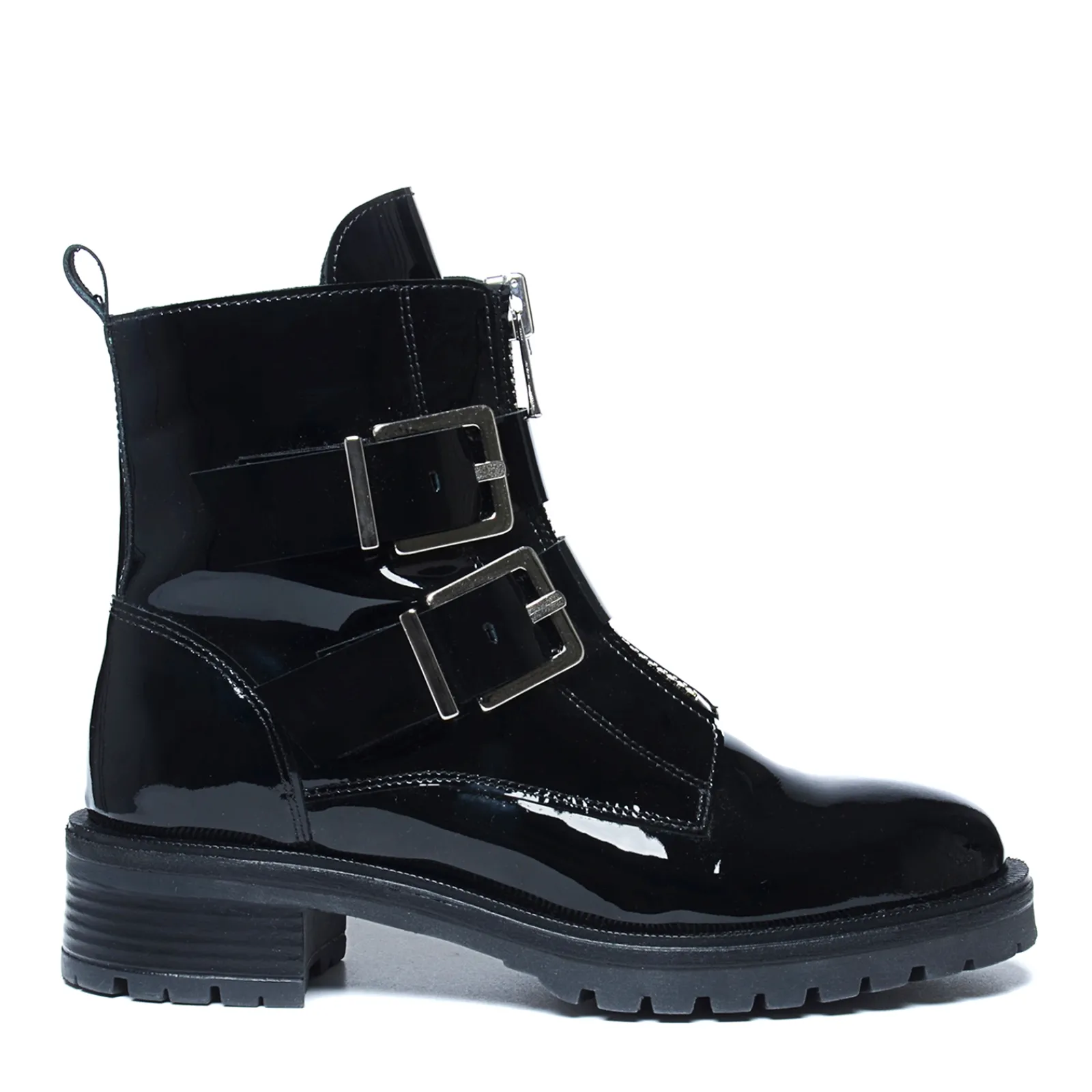 Lak Leren Biker Boots Met Gespen En Rits^Sacha Online