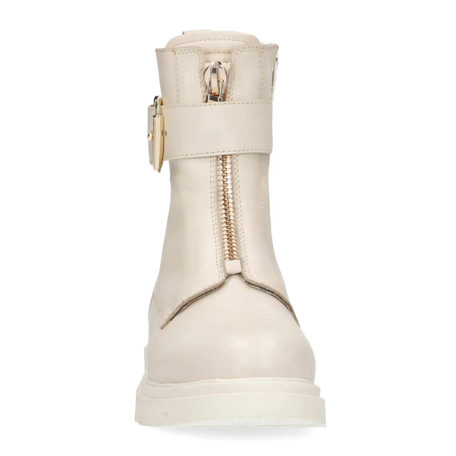 Latte Leren Biker Boots Met Gesp^Sacha Flash Sale
