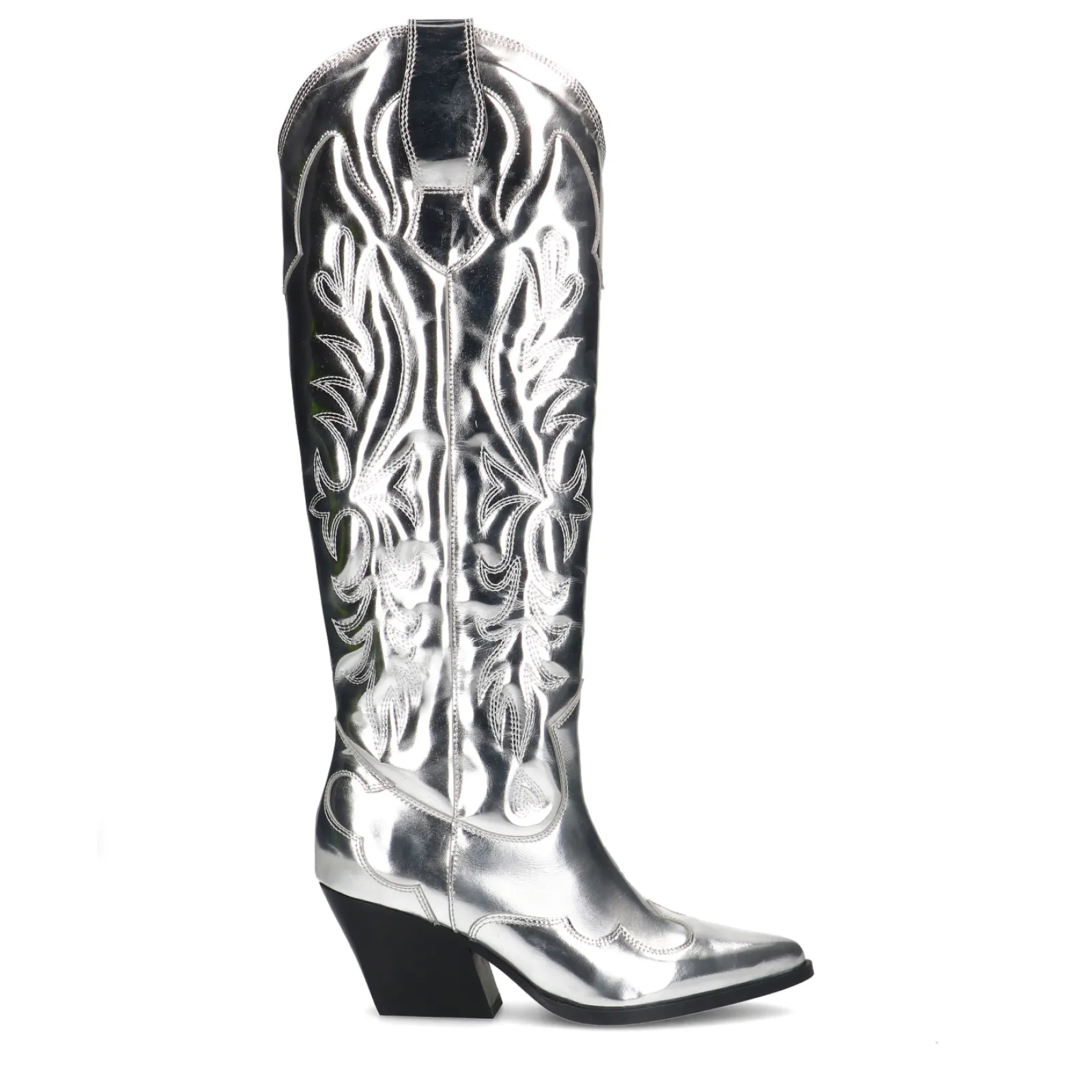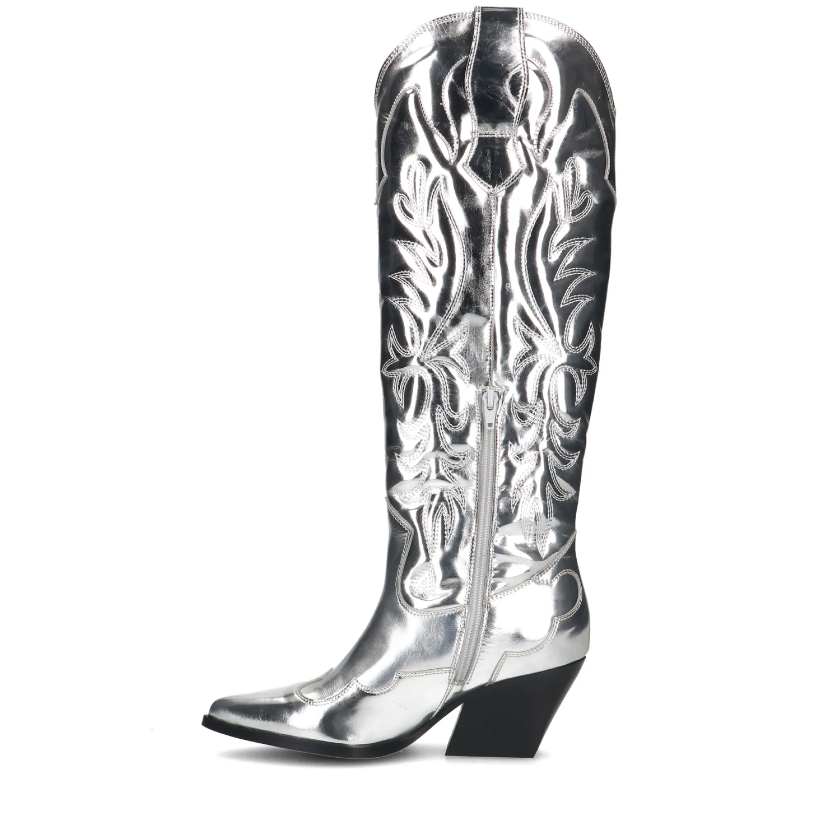 Deze Exclusieve Limited Edtion Metallic Cowboylaarzen Van Sacha Zijn Echte Showstoppers! Het Hoge Metallic Western Model Geeft Extra Spice Aan Jouw Look Met Als Finishing Touch Een Blokhak Van 9 Cm Hoog. De Zilverkleurige Western Laarzen Zijn Geheel Gemaakt Van Leer En Zijn Aan De Buitenzijde Afgwerkt Met Doorgestikte Puffer Details. De Schachthoogte Is 45 Cm En De Schachtomtrek Meet 38 Cm. Maak Gebruik Van De Juiste Onderhoudsproducten Om Jouw Dream Boots Zo Goed Mogelijk Te Verzorgen!