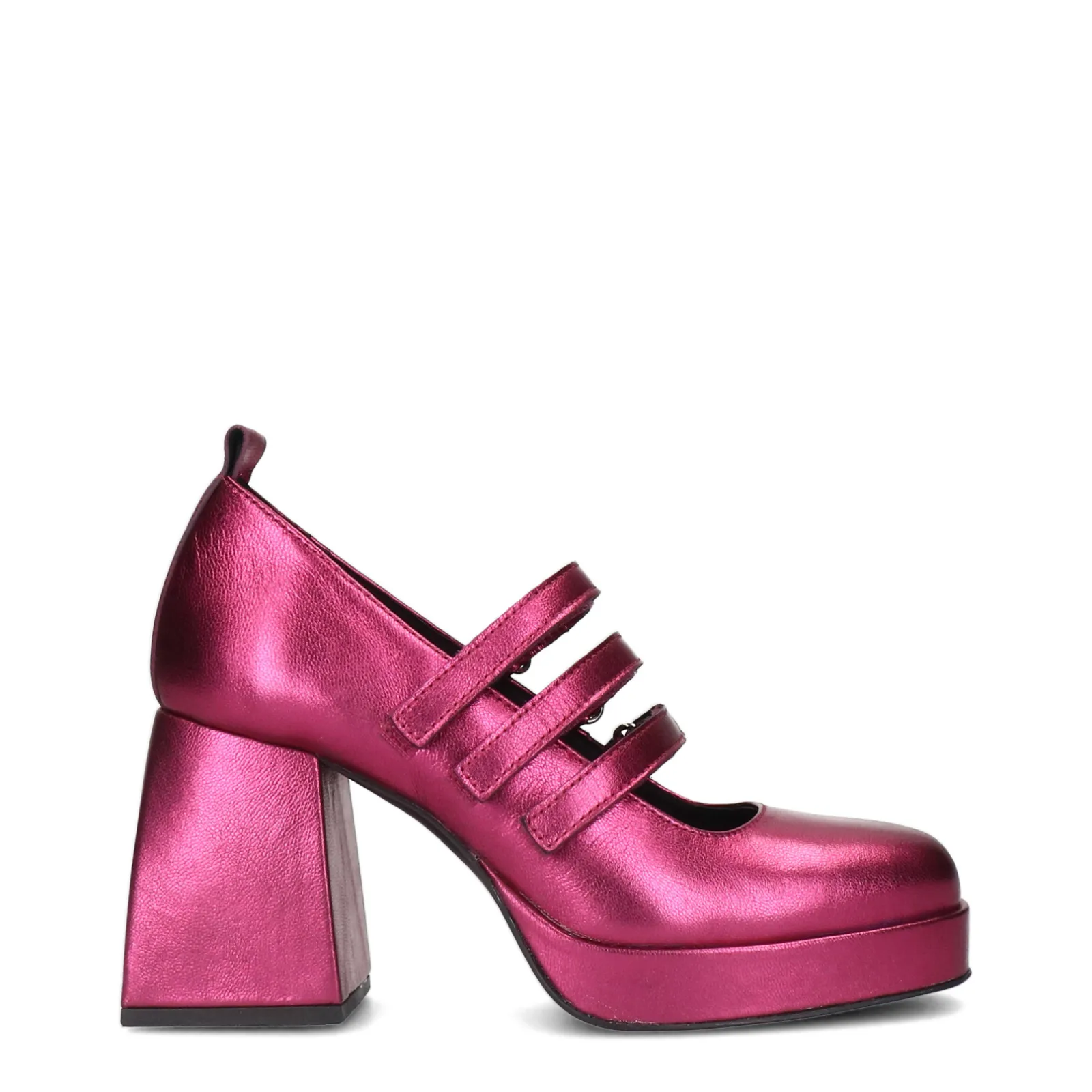 Deze Iconic Plateau Pumps Van Sacha Hebben Verschillende Opvallende Kenmerken. De Gesloten Pumps Zijn Geheel Gemaakt Van Leer En Hebben 3 Klittenbandjes Op De Wreef Van De Voet. De Roze Metallic Schoenen Hebben Een Blokhak Van 9 Cm En Een Plateau Van 2 Cm. Maak Gebruik Van De Juiste Onderhoudsproducten.