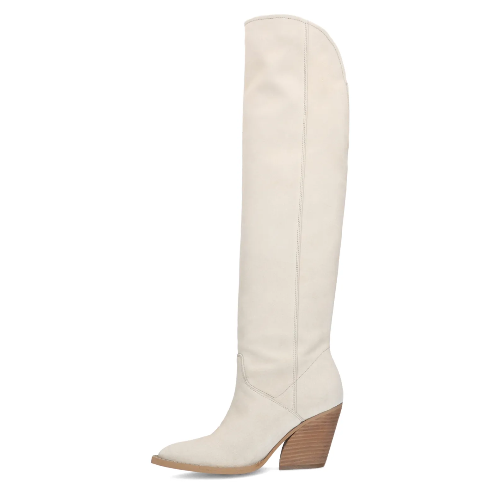 Deze Off White Cowboylaarzen Hebben Een Afzak Effect Bij De Schacht. De Laarzen Komen Net Tot Over De Knie En Hebben Elastiek Aan De Achterkant Waardoor Je Er Gemakkelijk Instapt. De Cowboylaarzen Zijn Volledig Gemaakt Van Suede. De Laarzen Hebben De Kenmerken Van Een Cowboylaars Door De Punten Neus En De Schuine Western Hak Van 9 Cm Hoog. De Laarzen Hebben Een Schachthoogte Van 56 Cm En Een Schachtomtrek Van 37 Cm. Maak Gebruik Van De Juiste Onderhoudsproducten.