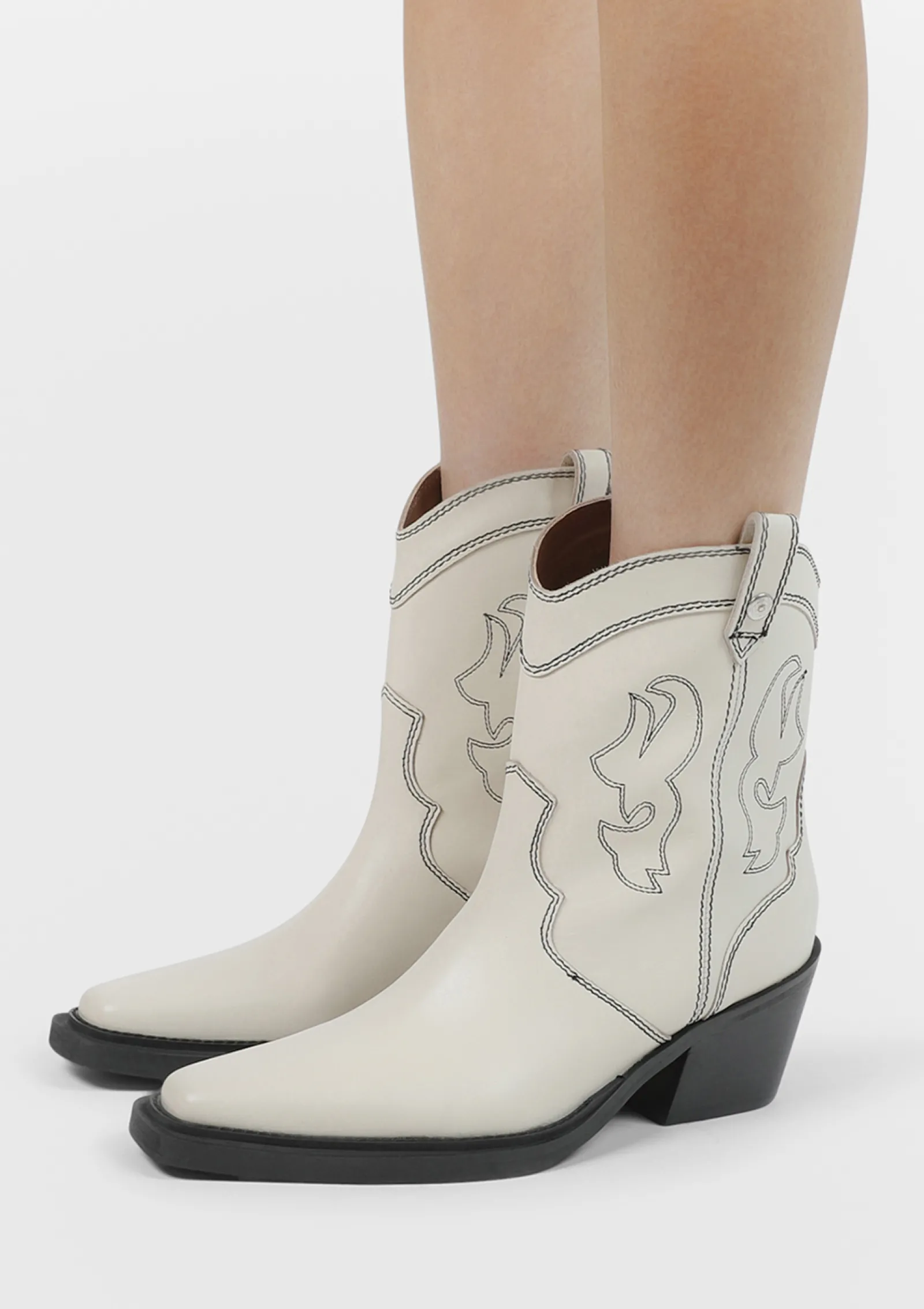 Off White Leren Cowboylaarzen Met Zwarte Sierstiksels^Sacha New