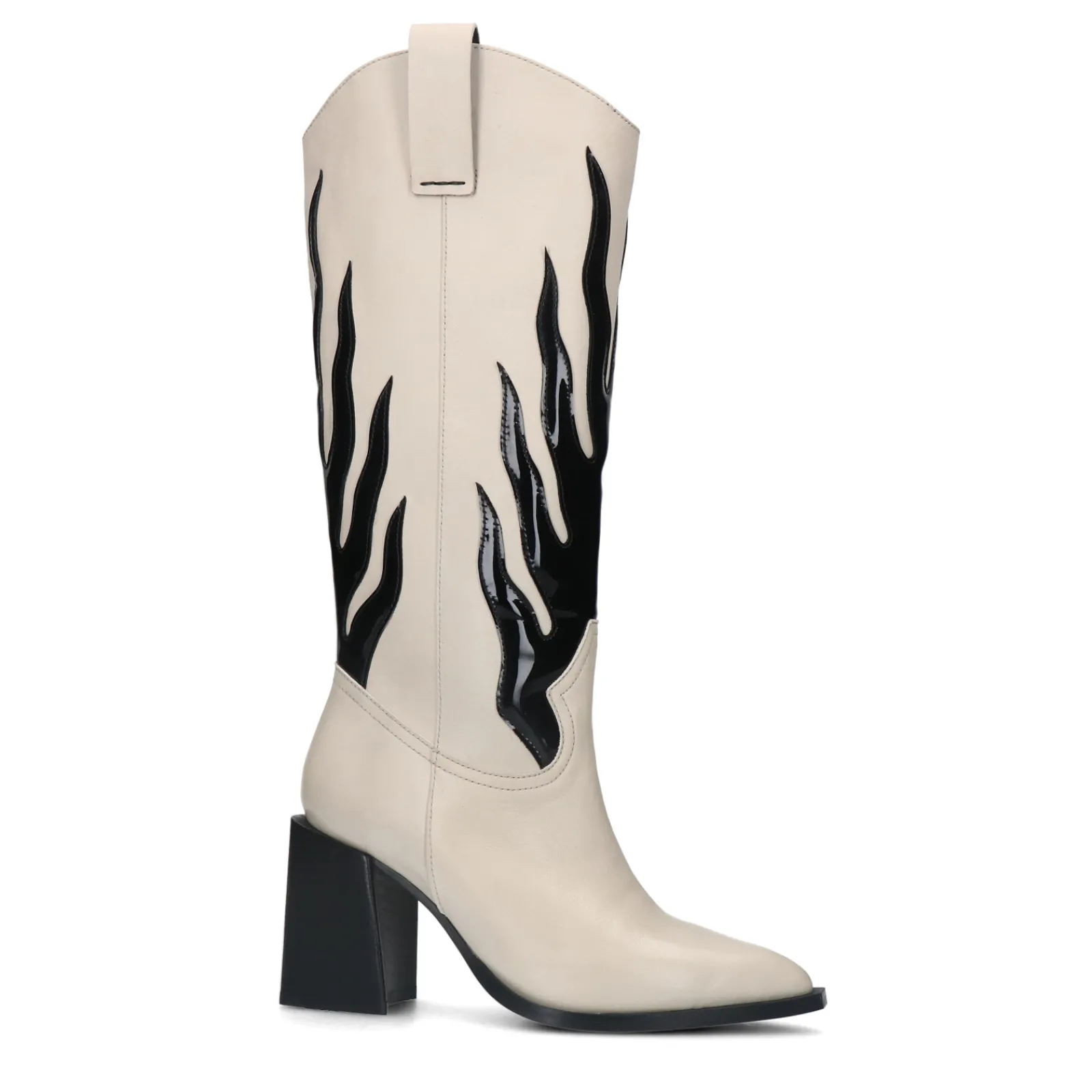Rock This Season Met De Off White Flame Cowboyboots Van Sacha! Deze Hoge Cowboylaarzen Hebben Kenmerkende Western Details Aan De Bovenzijde Van De Schacht, Een Zwart Shiny ‘Flame’ Design En Een Rechte Blok Hak Als Twist. De Schachthoogte Is 31 Cm, De Schachtomtrek 38 Cm En De Hak Heeft Een Hoogte Van 8 Cm. Maak Gebruik Van De Juiste Onderhoudsproducten Om De Western Laarzen Te Verzorgen.