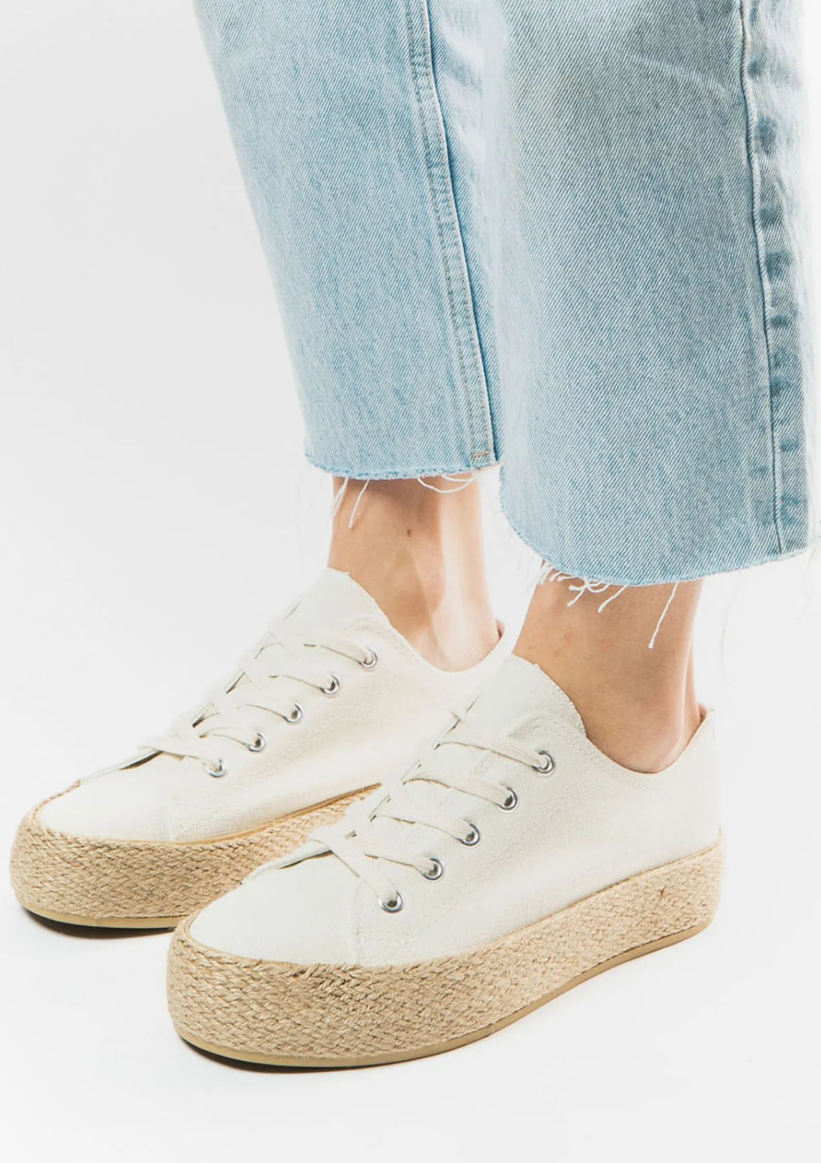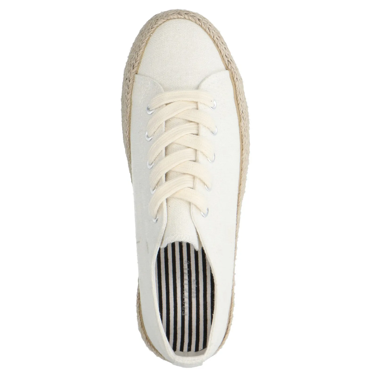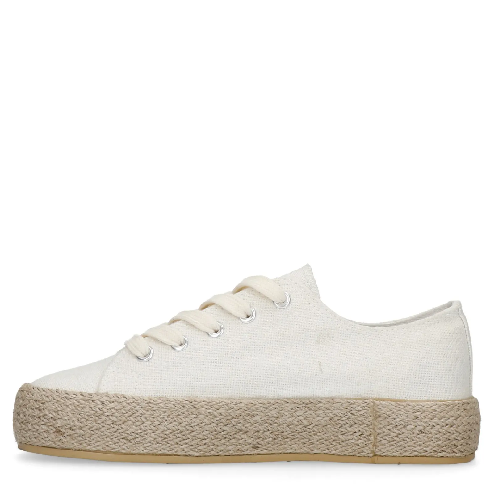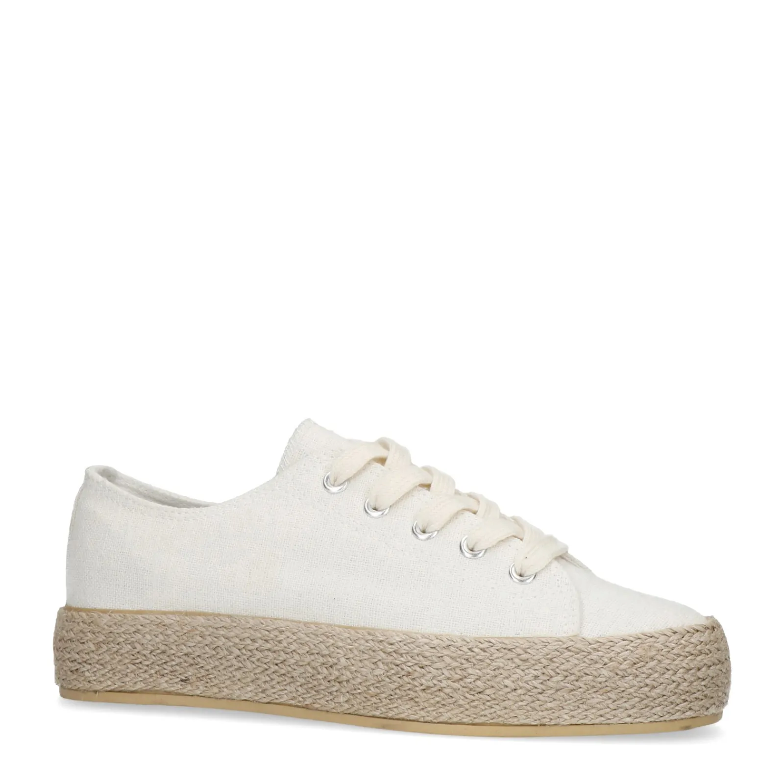 Talkin About An Essential! Deze Off White Canvas Sneakers Zijn Afkomstig Uit De Women Essentials Collectie. De Buitenzijde Van De Schoenen Is Gemaakt Van Canvas, De Binnenzijde Van Textiel En De Zool Van Synthetisch Materiaal. De Sneakers Zijn Voorzien Van Een Trendy Touwzool Waardoor Ze Een Zomerse Look Hebben. Combineer De Schoenen Met Een Jeans Of Een Zomerjurkje Voor Een Stijlvolle Outfit.