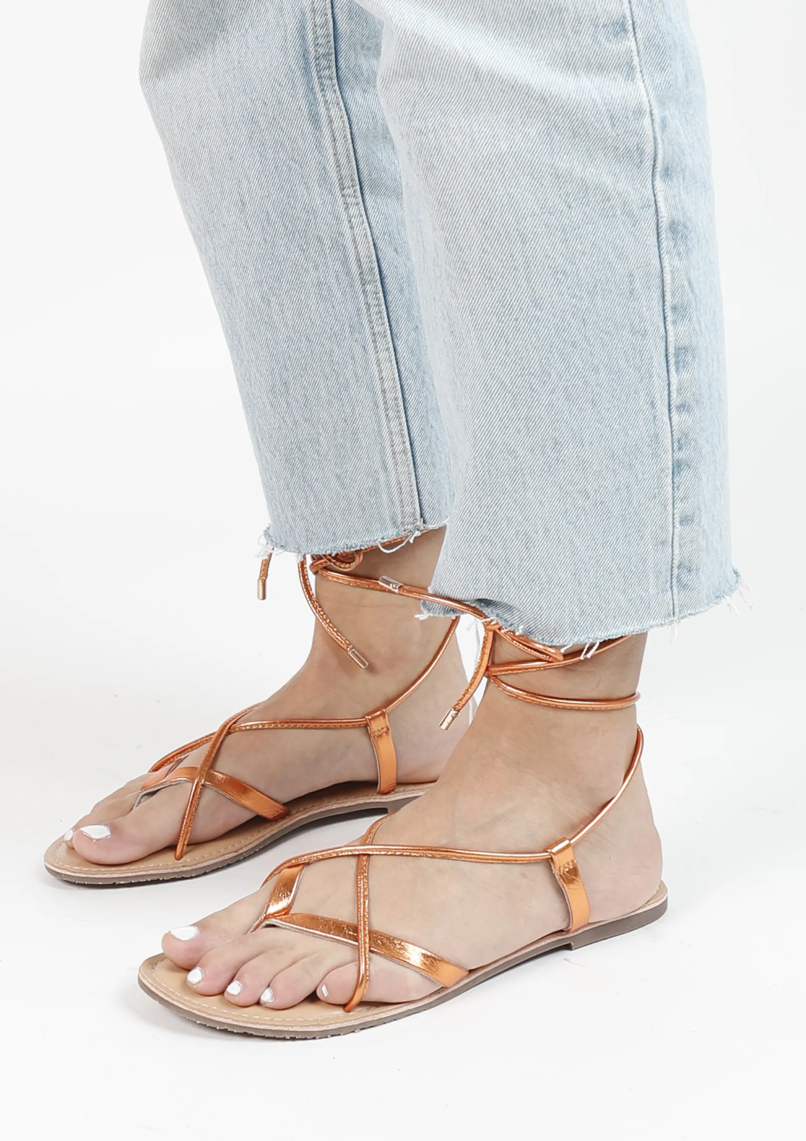 Deze Oranje Metallic Sandalen Zijn Perfect Voor De Lente! De Metallic Bandjes Kruisen Over De Voet En Hebben Vanaf De Enkel Gemeten Een Totale Lengte Van 60 Cm. Zowel De Binnen- Als Buitenzijde Van De Sandalen Is Gemaakt Van Leer. De Hak Van De Sandalen Heeft Een Hoogte Van 1 Cm. Maak Gebruik Van De Juiste Onderhoudsproducten Om Je Summer Sandals Zo Goed Mogelijk Te Verzorgen!