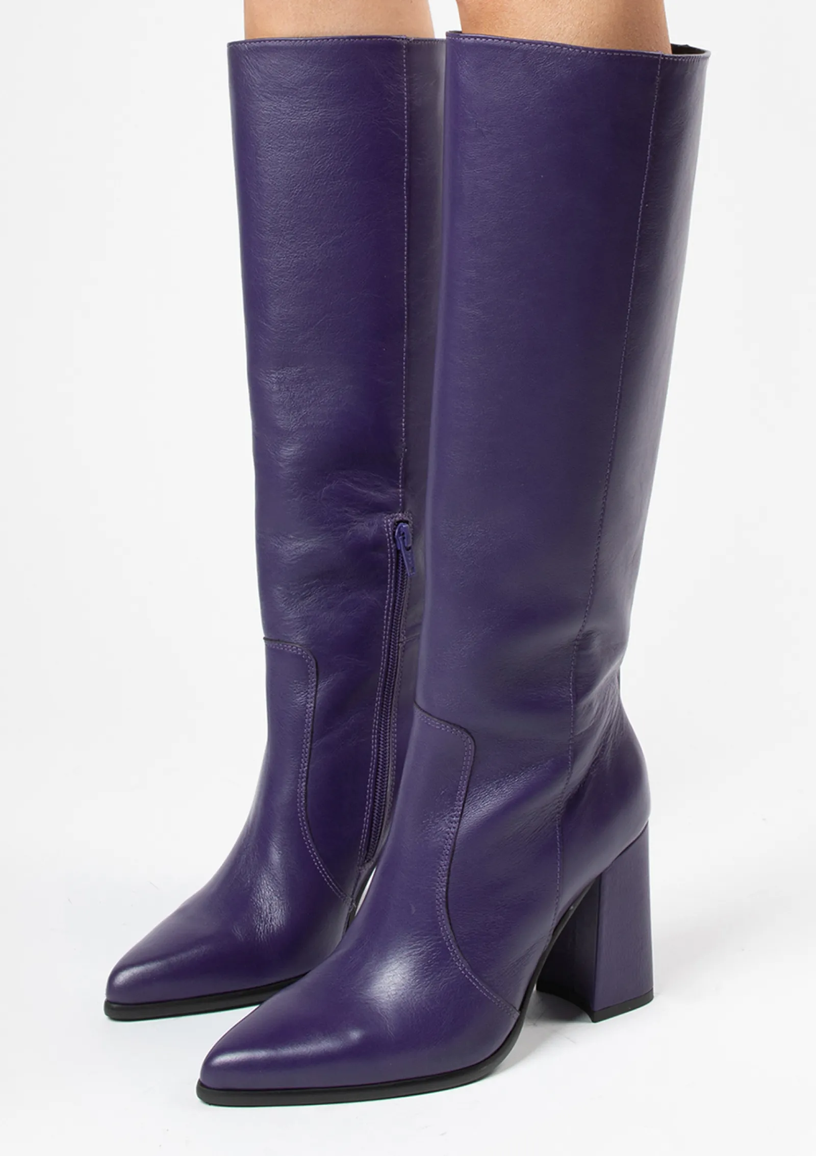 Paarse Kniehoge Leren Laarzen Met Hak^Sacha Best Sale