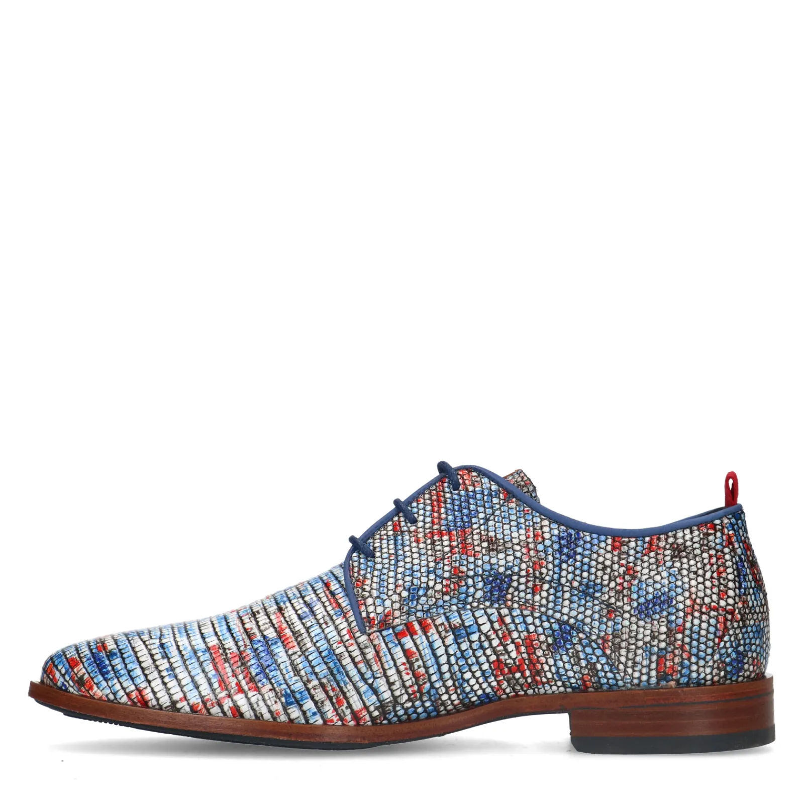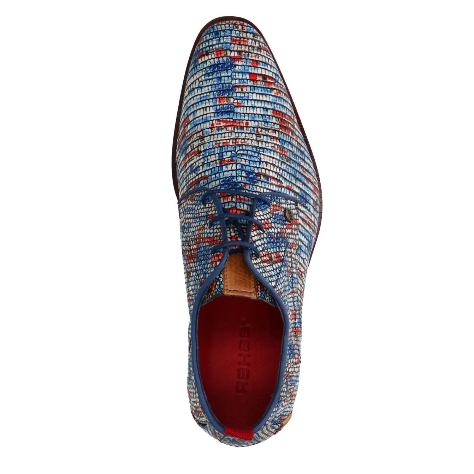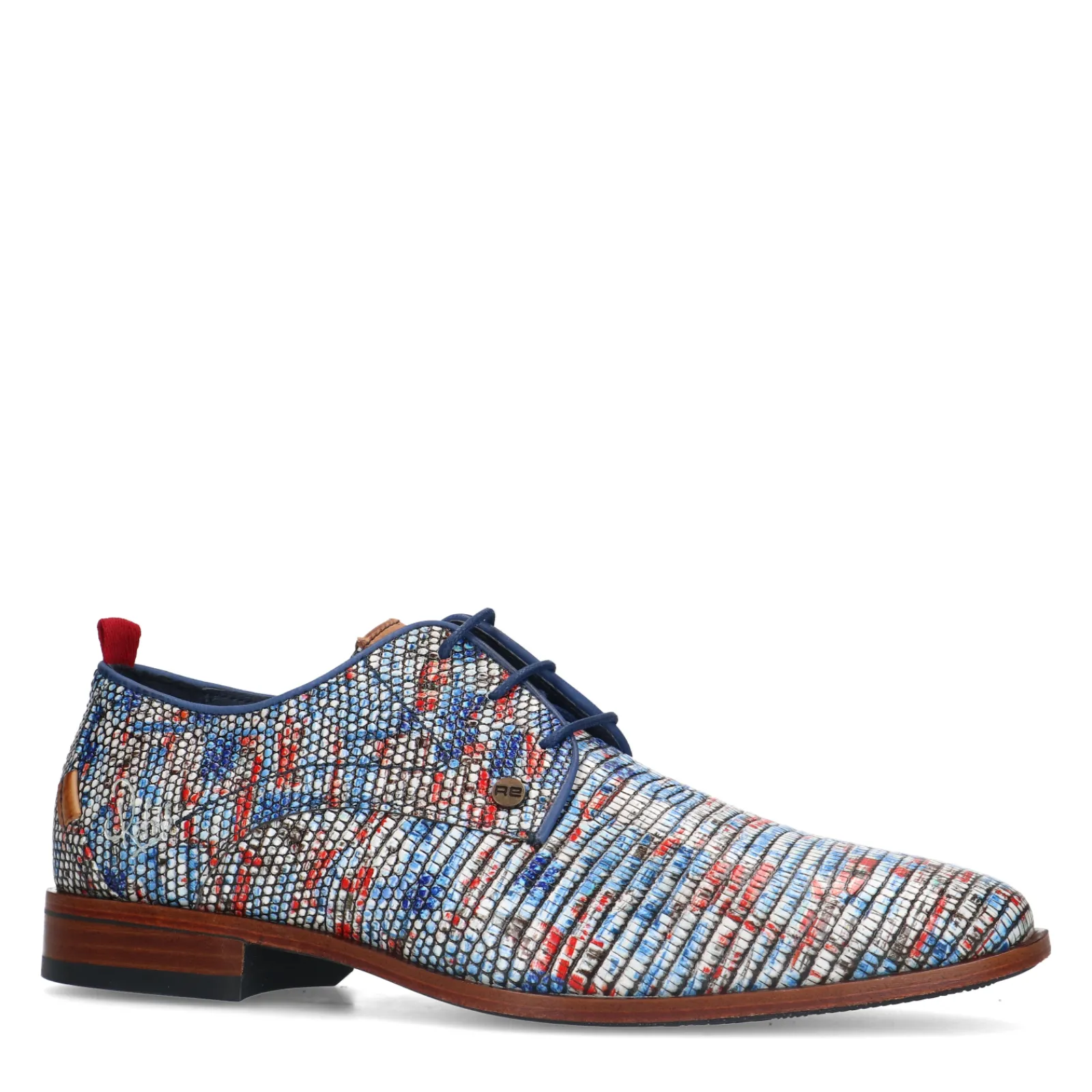 Blauw-Rode Multicolor Veterschoenen Van Rehab. De Veterschoenen Hebben Een Gedetailleerd Patroon Met Multicolor Favela G…